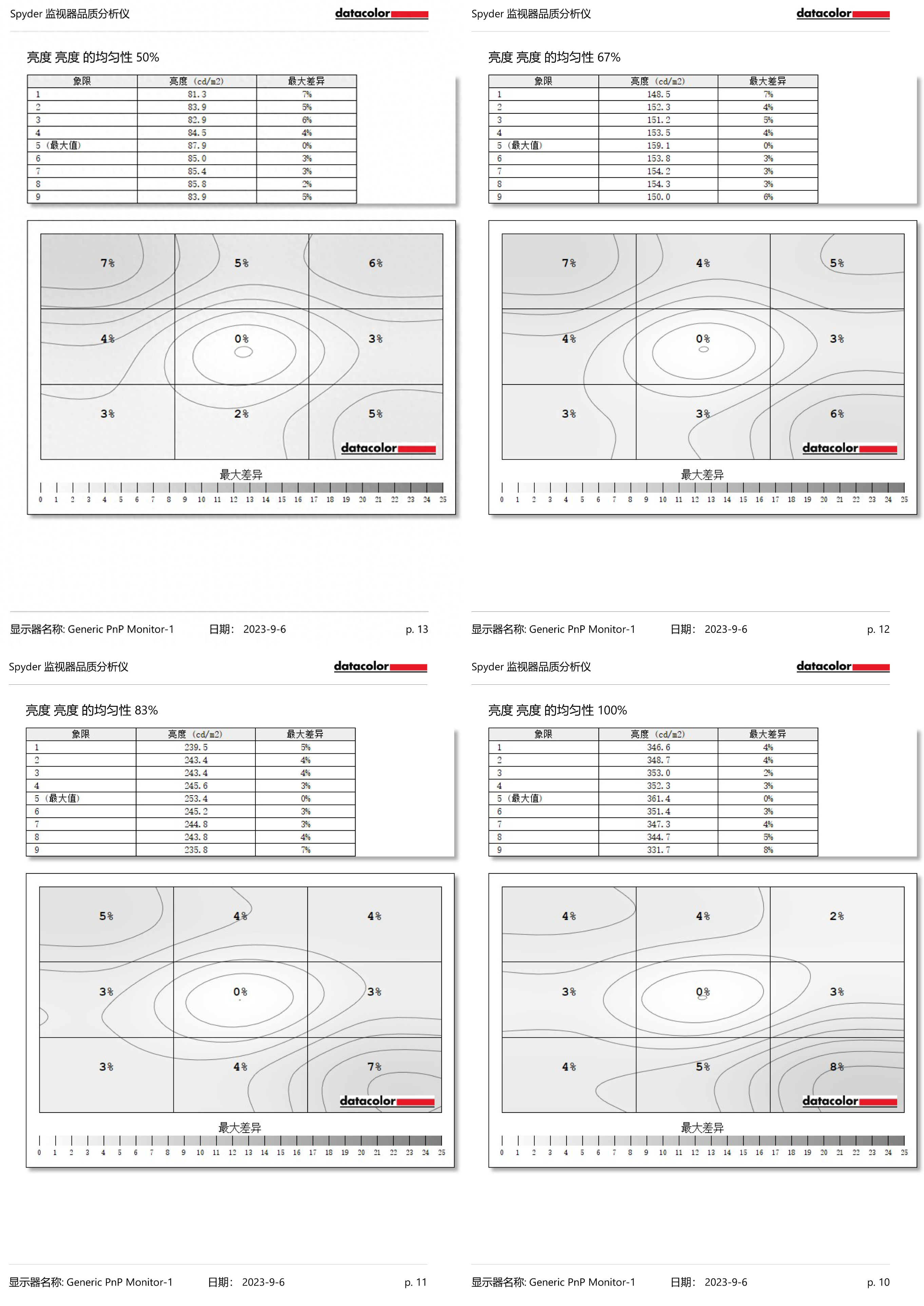 一般10%以下的差異值是屬於正常水準。通過測試顯示,HKC MG27U顯示器屏幕亮度均勻性很好。