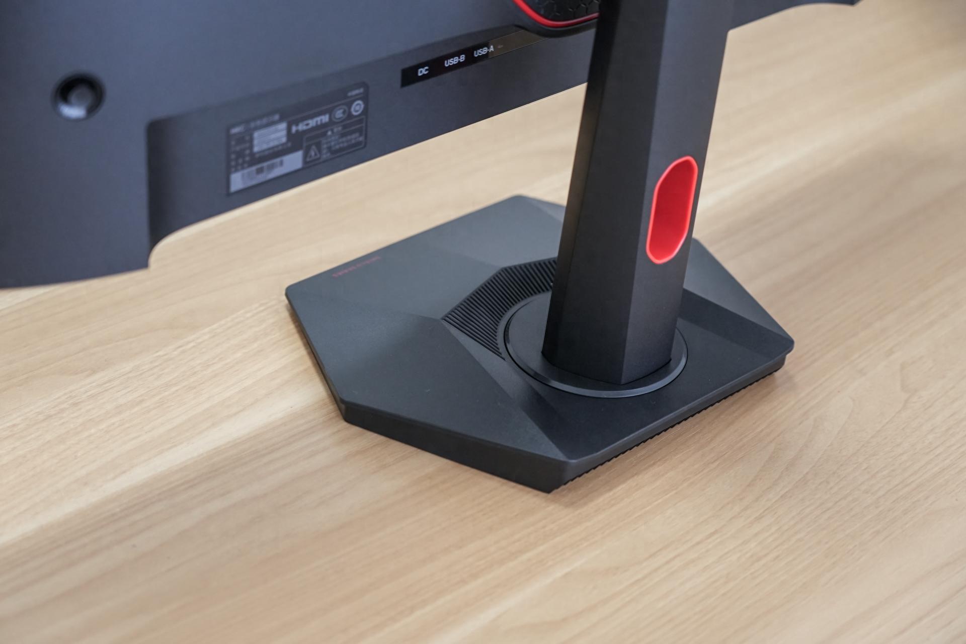 六邊形底座相比傳統的V型底座,佔地面積更小,穩固性也不錯,像我平時辦公桌東西堆得多,MG27U也不會佔用太多桌面空間,極大的提高了桌面空間利用率,即便是學生書桌使用起來也不佔地方,擴大利用率。