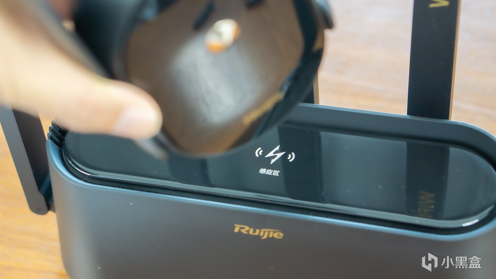 它的頂部有一個感應區,如果小夥伴們需要多隻子路由與之配對,通過觸碰該區域,碰一碰,就可以實現子母路由的連接組網,還是相當方便的!