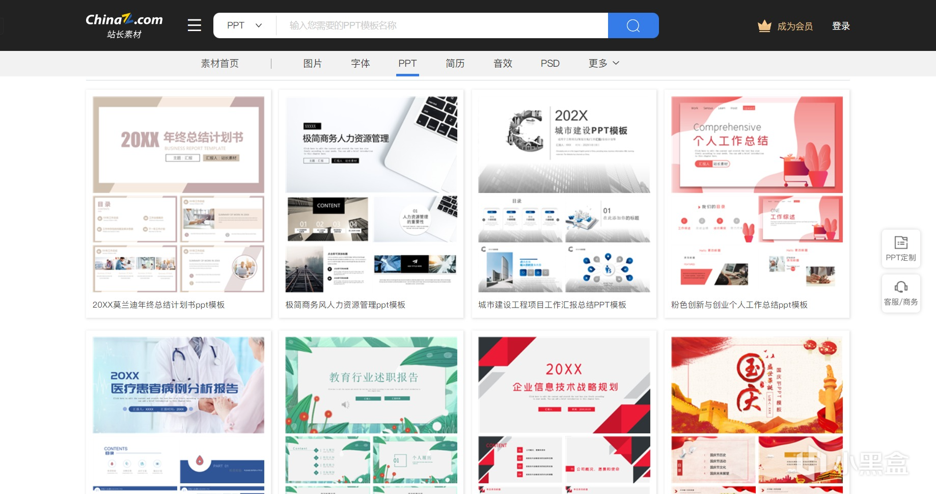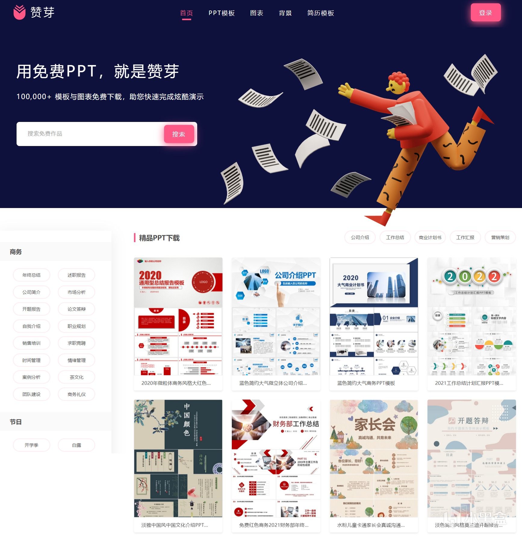PPT模板,文案,素材等一些功能都是免费的,收费的是一些成品,而我本篇分享的是模板网站,故算作免费一栏,不会真有人完全用成品吧。