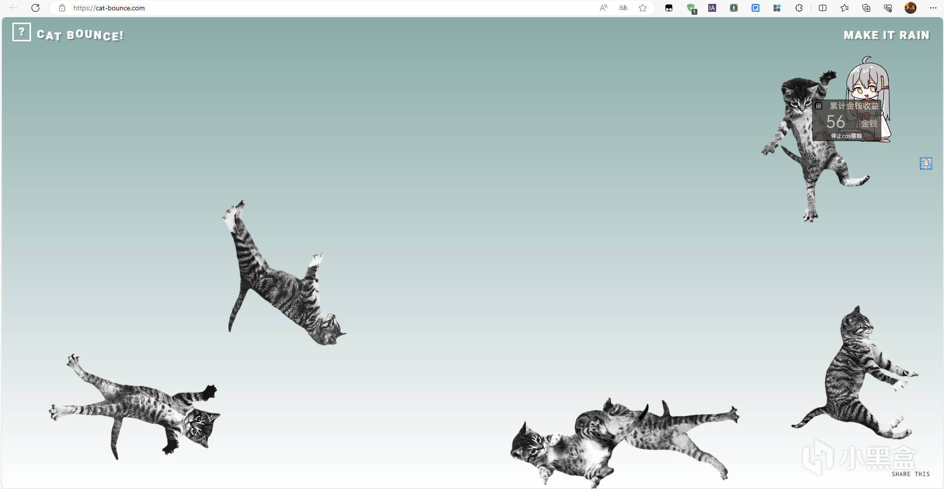 彈跳貓咪,一堆可以彈跳的貓咪,它會根據你移動的位置和力度,力度越大,彈的越高,速度越快