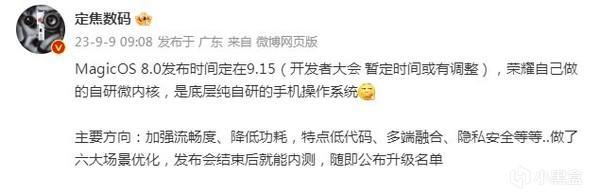 此外,手機中國還報道了關於榮耀新系統的消息。榮耀將推出魔法 8.0(MagicOS8.0)系統,與榮耀 Magic6 系列一同發佈。不過,這一系統可能不會在本月亮相,而是可能會與榮耀的榮耀 100 系列一同發佈。據透露,魔法系統 8.0 將帶來重大改變,它被描述爲一個可以容納各種功能的系統。榮耀 MagicOS 8.0 是榮耀自己做的自研微內核,屬於底層純自研的手機操作系統。該系統的主要方向爲:加強流暢度、降低功耗,特點低代碼、多端融合、隱私安全等等,做了六大場景優化。
