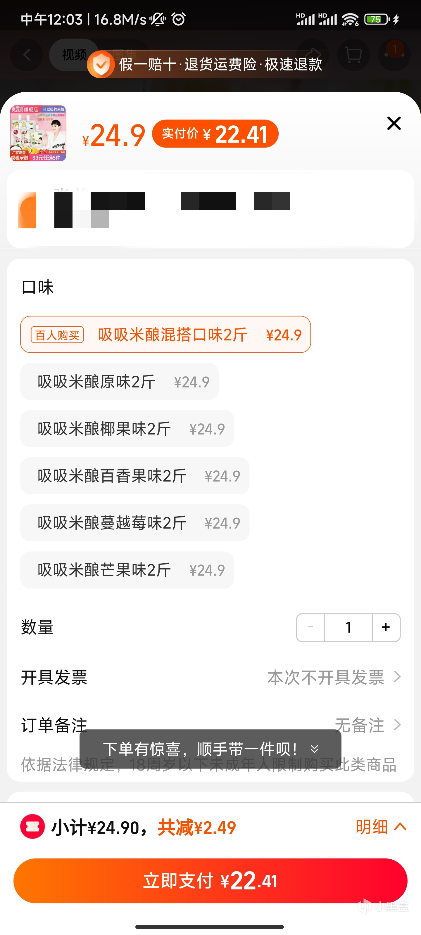 “良品铺子”、“三只松鼠”这些品牌质量是不错,但是也贵,可以看看包装袋上的被委托生产单位(即代工厂)是谁,然后去搜这些代工厂的商品。比如良品铺子的米酿是“爽露爽”代工的,就可以直接去买爽露爽的米酿。价格差的不是一星半点。良品铺子300g 9.8元(每100g 3.27元),爽露爽1000g 24.9元(每100g 2.49元),代工厂便宜了24%,即76折,还是挺划算的。