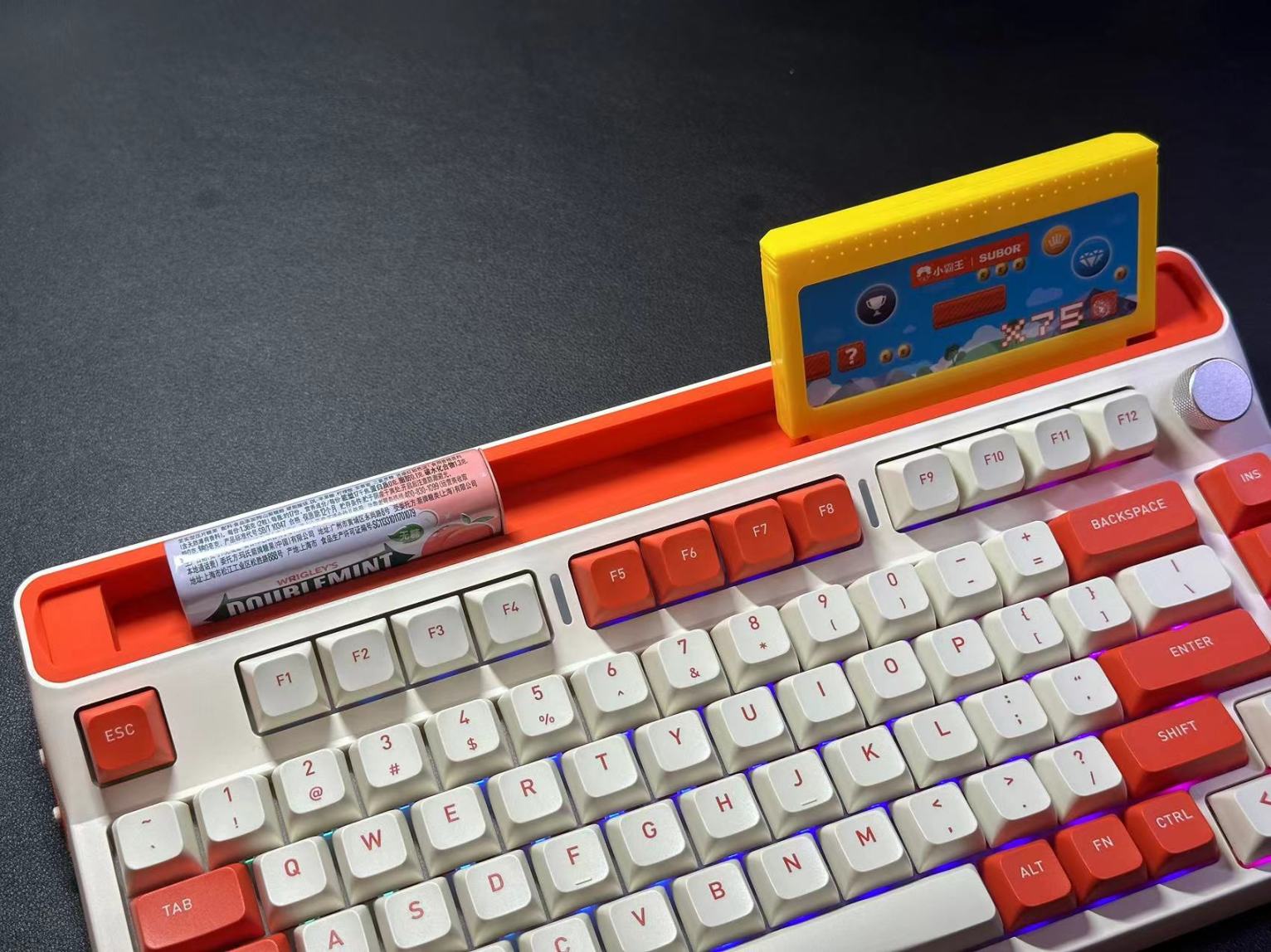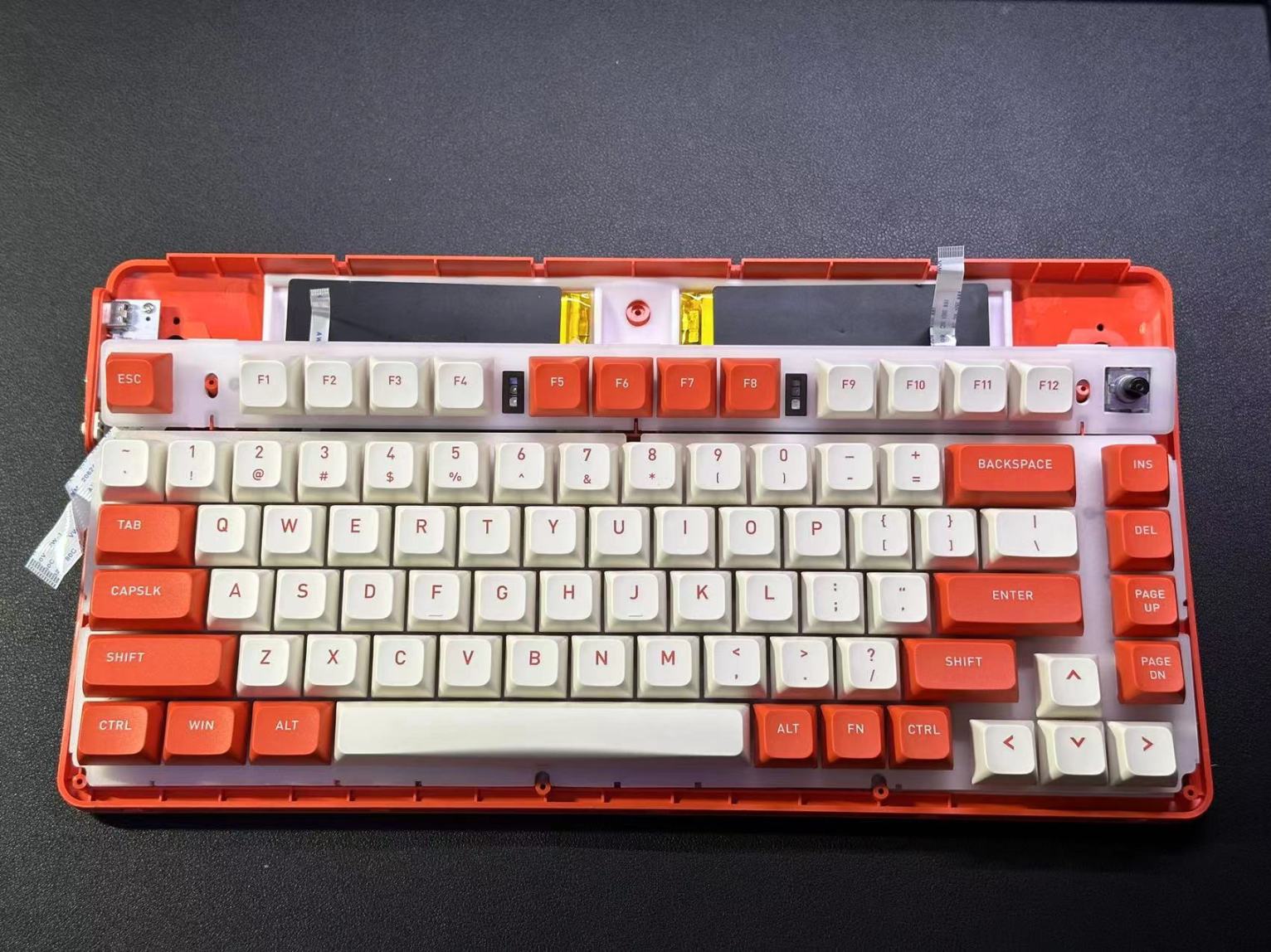 X75本次采用的是75配列,小霸王这次没有直接使用公模,而是自己开了一套磨具,塑料开模的费用相比铝的费用要费用要高很多。配色方面,应该算是一种致敬采用红白机。