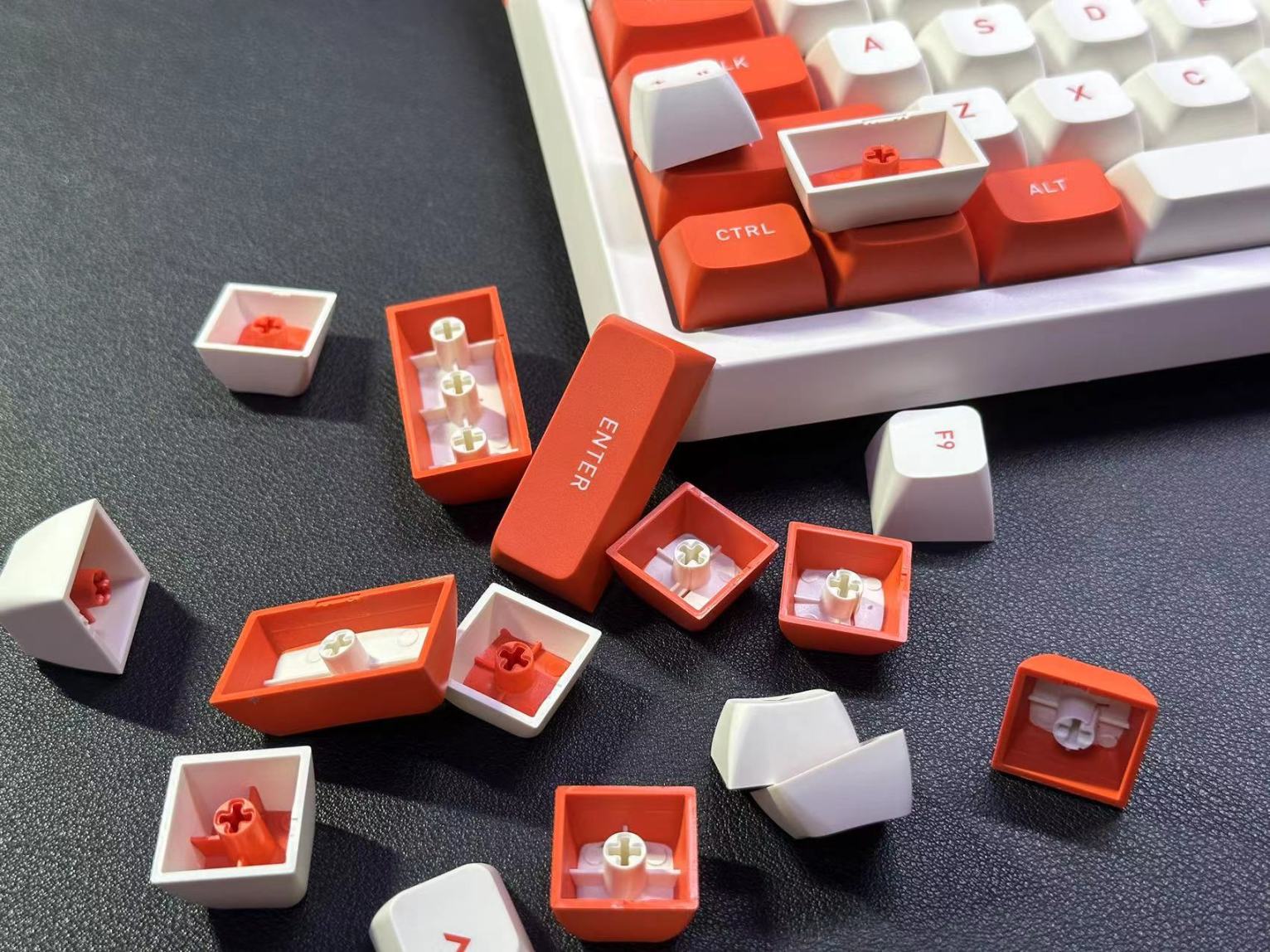 X75的就键帽采用二色PBT材质,高度为类OEM高度,整体 有一定弧度设计,码字起来还是比较舒服的。而且整体的水口处理也是没发现毛刺情况,非常不错。