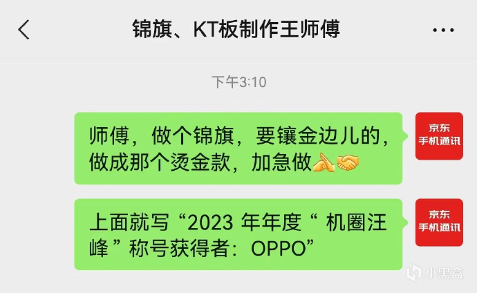 擅长整活的京东手机通讯官微,紧急联系师傅,做了一个镶金边的锦旗。