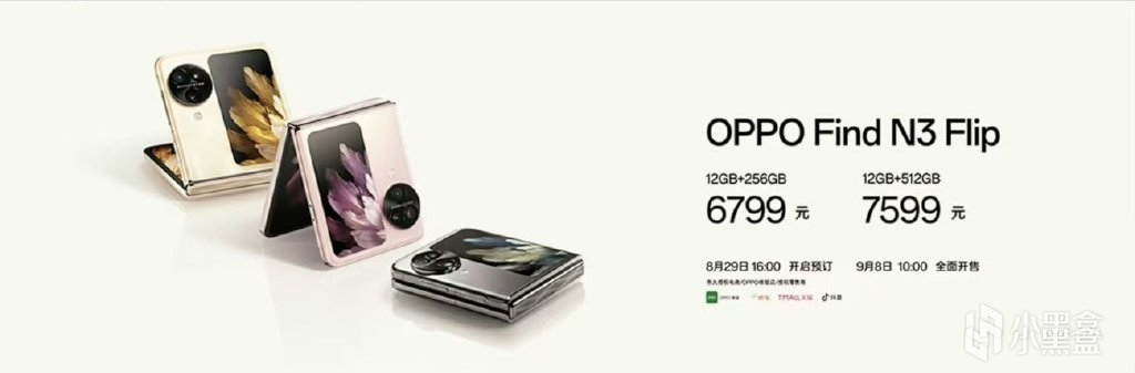 9月8日,OPPO Find N3 Flip各渠道全面开售,拥有月光缪斯、薄雾玫瑰、镜中之夜三款配色,12GB+256GB起售价6799元,12GB+512GB起售价7599元。