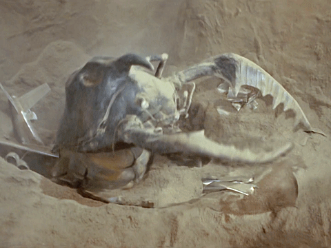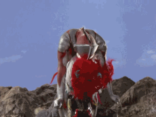 破坏光线。能发出强大威力的蓝色破坏光线,击碎了岩石,对奥特曼也发射了,可惜被躲开了。