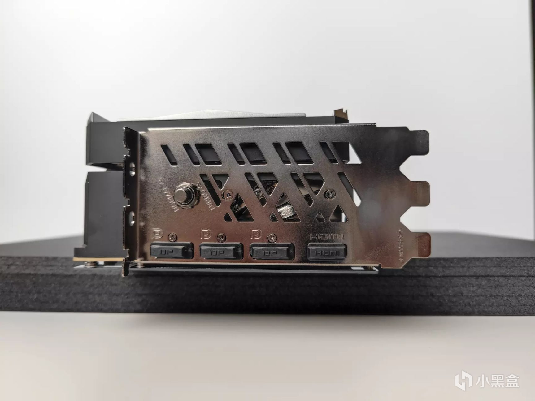 ▲3個DP1.4a+1個HDMI2.1接口,視頻接口上方的小按鈕可實現一鍵超頻。