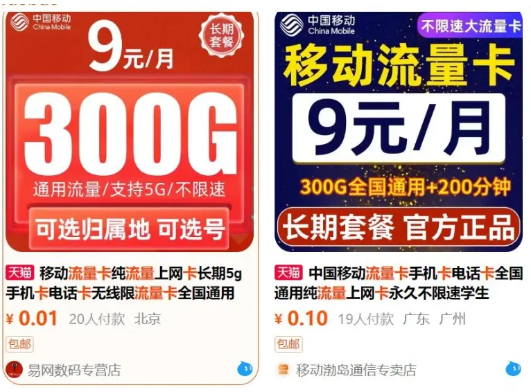 然而我们也会在各个视频平台看到这种几十块一百多G的流量卡广告,那这些可靠吗?对于这个问题,我们先搞清楚这种流量卡的来源。这种卡出现在市面上主要是由于各地运营商为了扩大销量,完成季度指标而推出的限时优惠套餐。这些卡大多是正规手机流量卡,套餐可查,服务该有的全有,但是往往归属地不可选,因为是各地运营商为了冲业绩推出的。本文章主要介绍这种还算可靠的流量卡,为读者细数此类卡隐藏的“坑”。