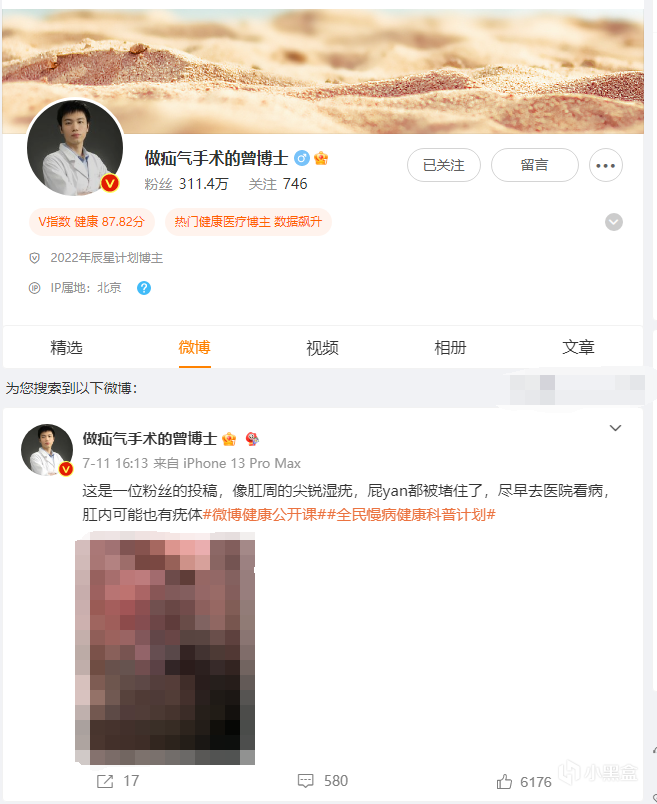 之前在微博上見識的一個科普醫學類的醫生博主叫普外科曾醫生來着,經常被人私聊ass方面的問題。