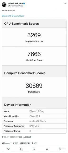 iPhone 15 Pro系列处理器会升级为A17仿生芯片(台积电3nm制程),iPhone 15与iPhone 15 Plus则会采用与iPhone 14 Pro系列相通的A16处理器(台积电4nm制程)。 记忆体容量方面,iPhone 15 Pro系列可能会从6GB升级到8GB,而iPhone 15与iPhone 15 Plus则维持在6GB。