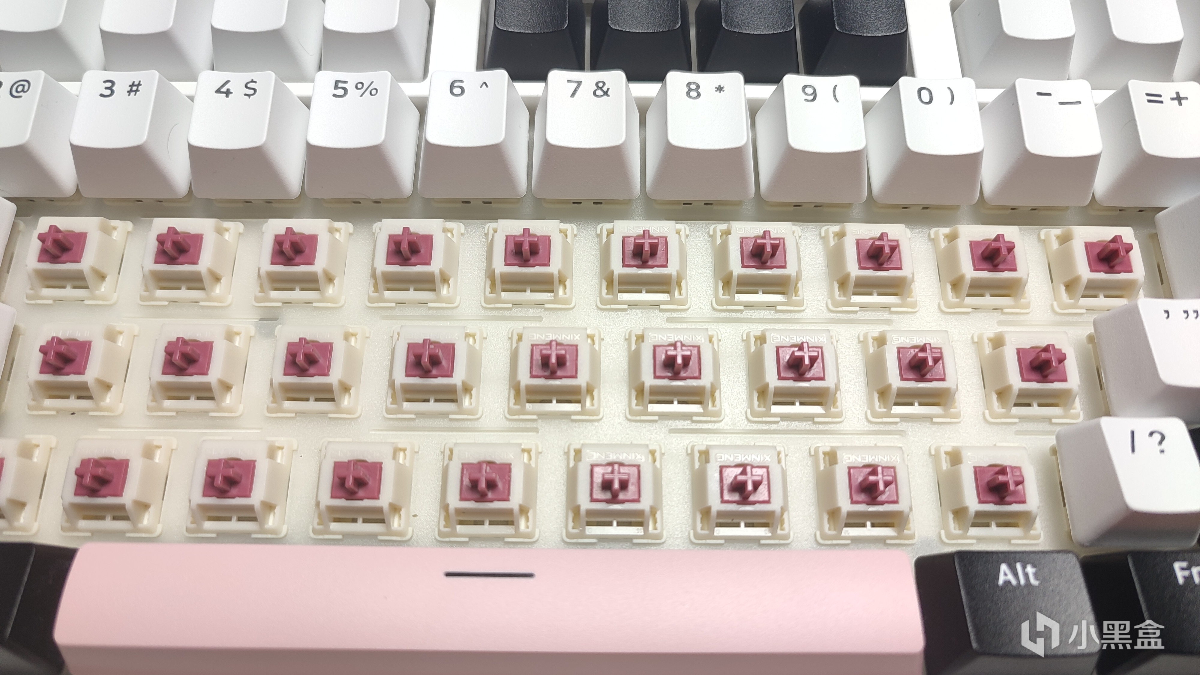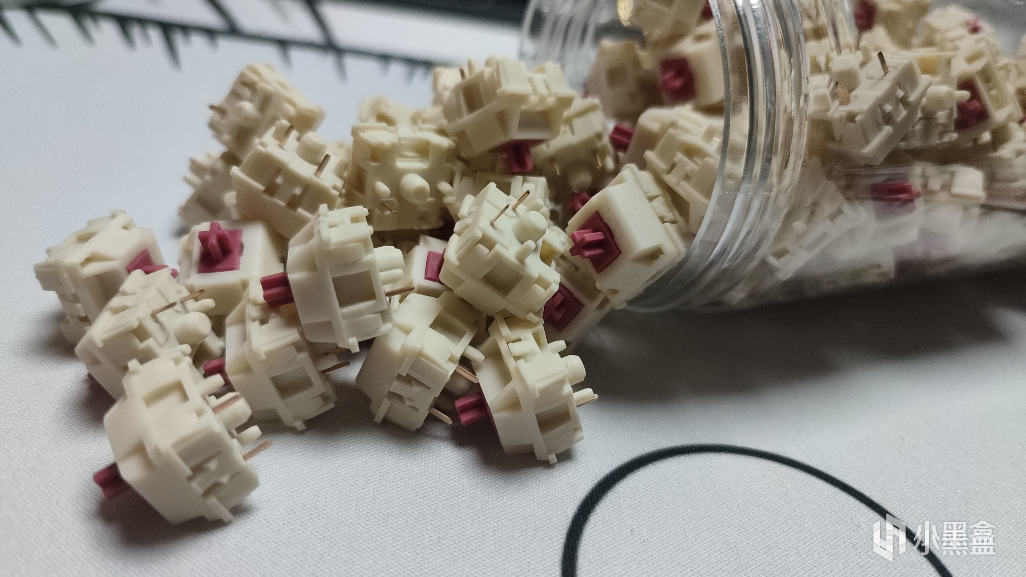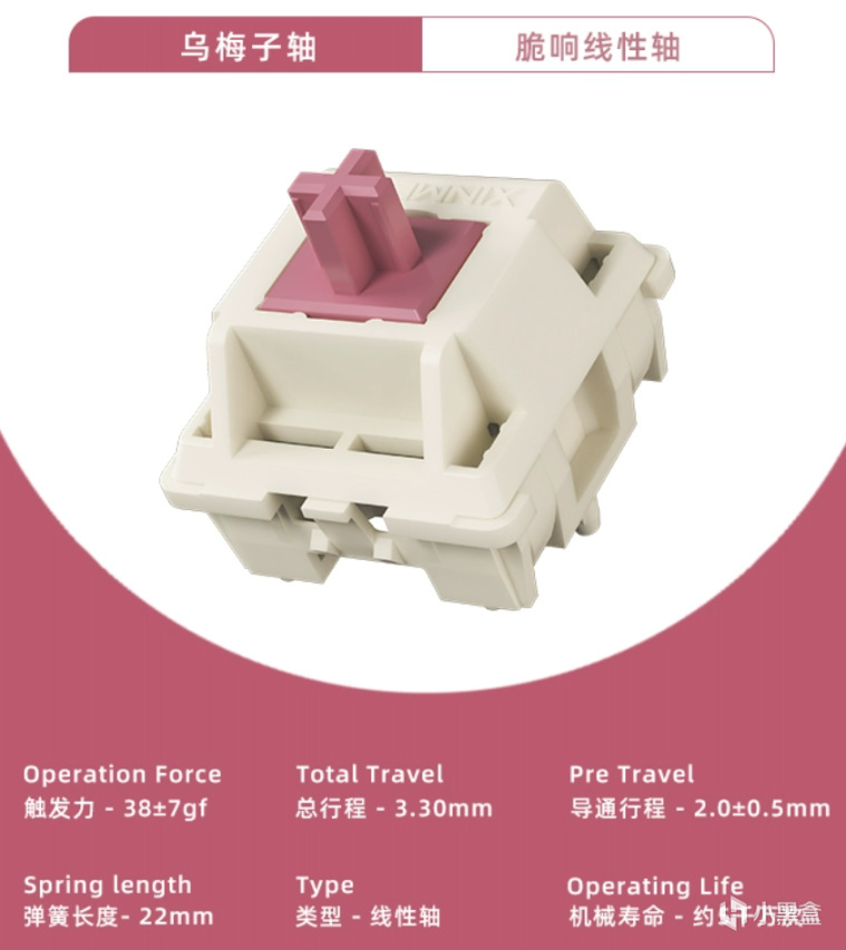 颜色搭配方面,整体和乌梅沾边的地方就属轴芯颜色了,采用的是酒红配色,外壳上则是全部采用暖白色。