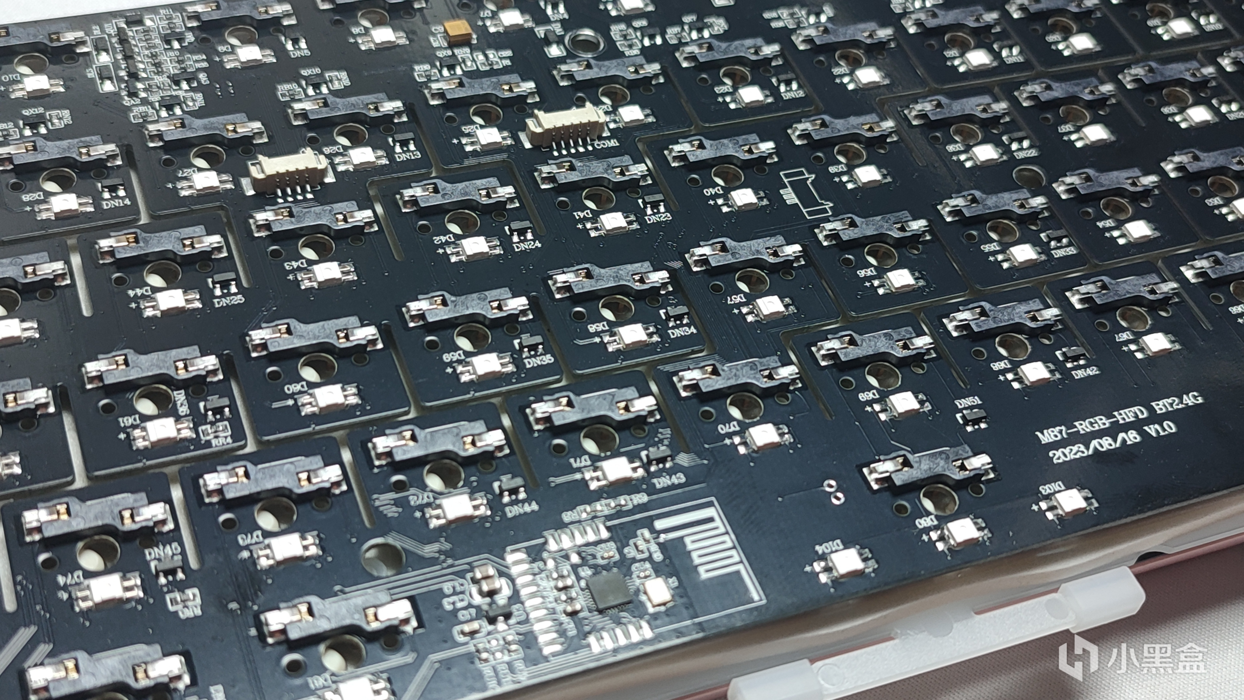 PCB整体采用轴座热插拔,支持三脚/五脚机械轴体热插拔,轴座品牌没有标明,应该不会采用很好的轴座品牌,但日常使用的话还是没太大问题的。灯位方面,采用的是下灯位,如果喜欢侧刻字透键帽版本也可以一步到位直接上259+的侧刻键帽版本。