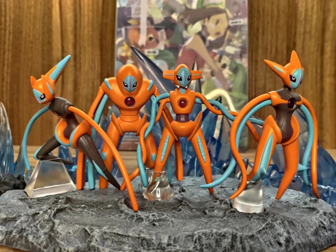 - 众所周知代欧奇希斯一共拥有4个形态,虽然在游戏里我们需要手动调查陨石才能改变形态,但是设定上来说它可以在对战中自由改变。(参考剧场版《裂空的访问者》)