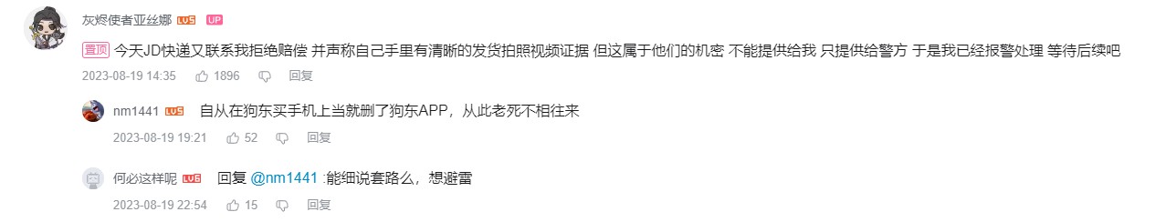 京東快遞表示手裏有清晰的發貨拍照視頻證據 但這屬於京東的機密 不能提供給博主,只提供給警方,博主遂報警。
