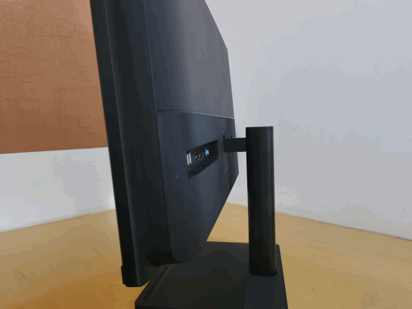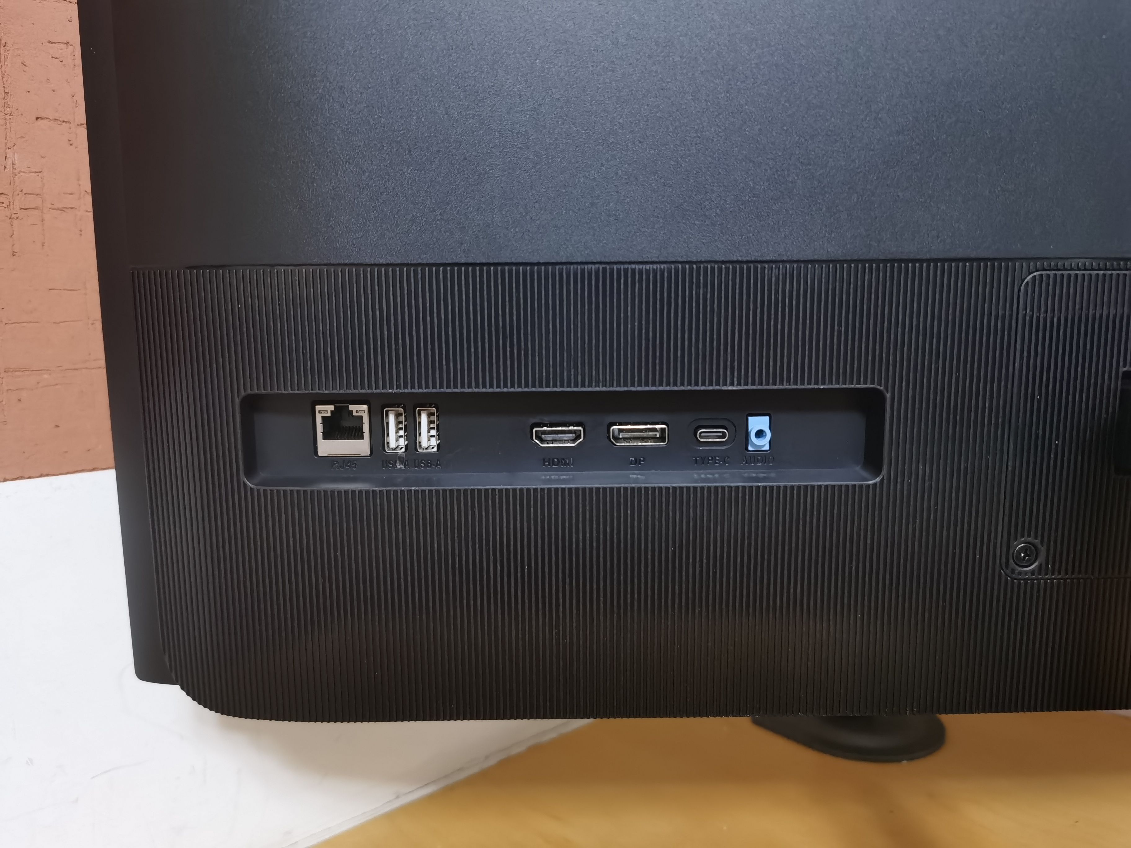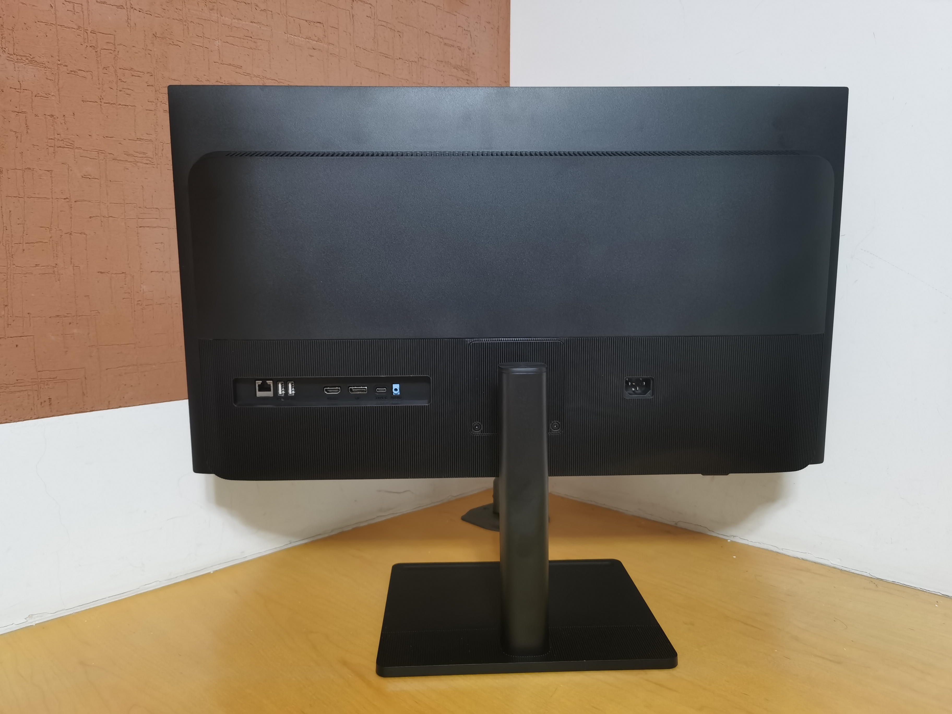 背部设计相对简约,左侧为接口区,而显示器内部则集成了电源,只需要使用一根电源线即可供电。