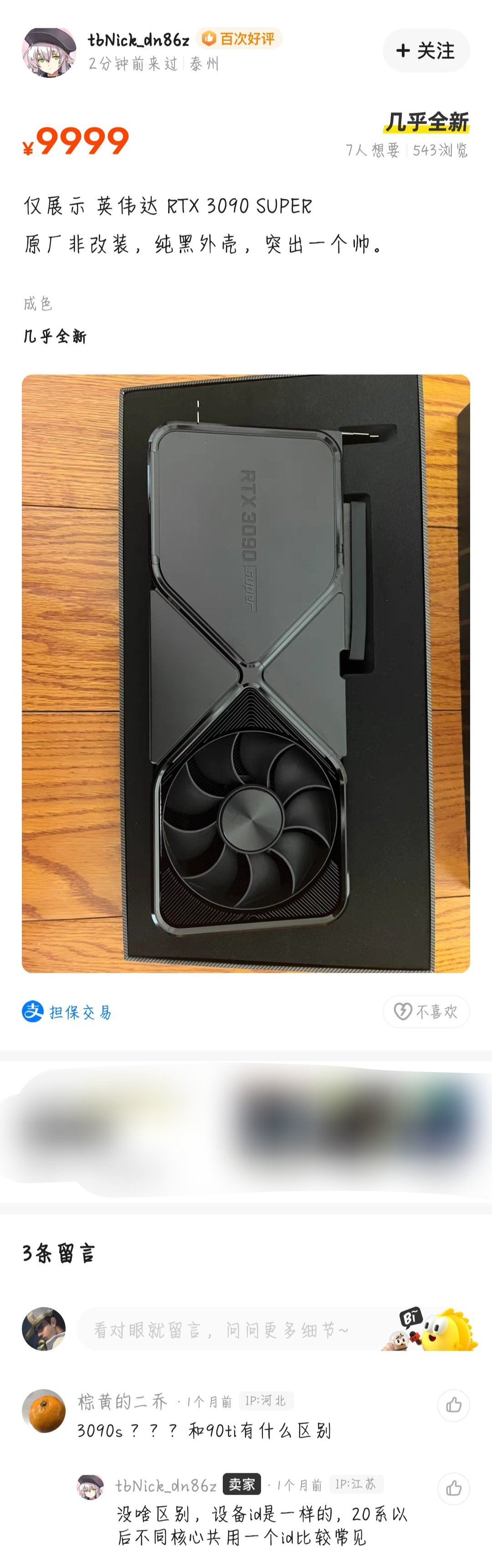 近日,一款神祕的顯卡在閒魚上曬出,引起了網友的關注。這款顯卡的外觀和規格與 NVIDIA GeForce RTX 3090 Ti 相同,但是卻印有“SUPER”字樣,而不是“Ti”。這到底是一款什麼樣的顯卡呢?