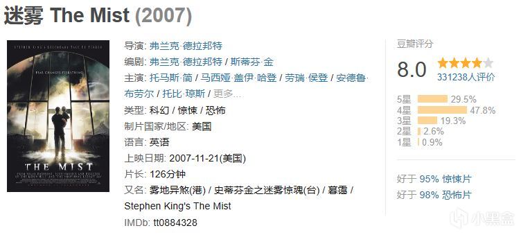 导演的结局处理,我个人觉得非常有个人想法(原作者史蒂芬金也表示很棒),大家可以去看看,是一个意想不到、同时引人思考的结局。