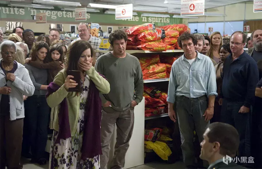 人类本身就对黑暗有天生的恐惧,与其说是对黑暗的恐惧,不如说是对“未知”的恐惧,这也迎合了“不可名状之物”这个概念。本片用雾来遮盖那些恐怖的怪物。