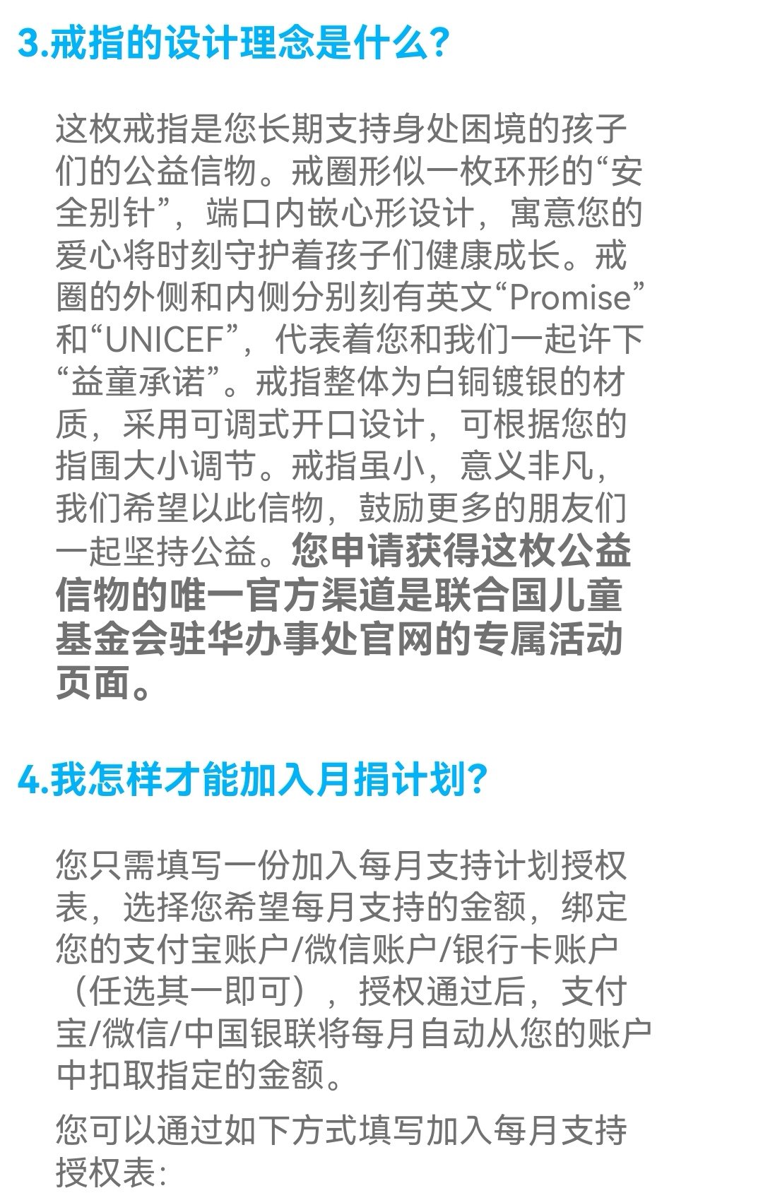 可以在聯合國兒童基金會的官網上參加月捐計劃,沒月捐助一部分錢用於救濟貧困兒童。月捐計劃是持續月捐,在支付寶上訂閱。如果不想月捐後可以在支付寶上隨時取消,不過您捐的錢對於一個貧困兒童來說真的很重要要謹慎選擇。成功月捐後將獲得一份聯合國兒童基金會頒發的國際證書以及一枚戒指。