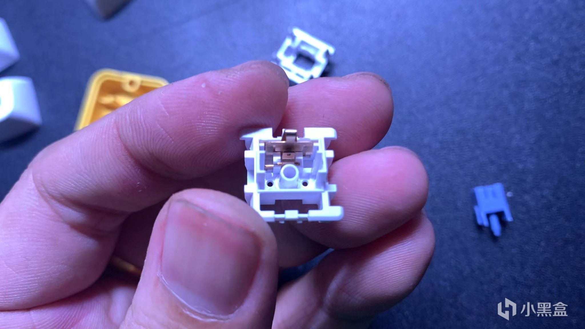 首先來看一下這個軸的外觀,外觀顏色是藍白色爲主,但是分爲了藍色外殼以及白色外殼,材質方面,軸體全部採用的是尼龍材質,這樣導致了他的聲音悶悶的。