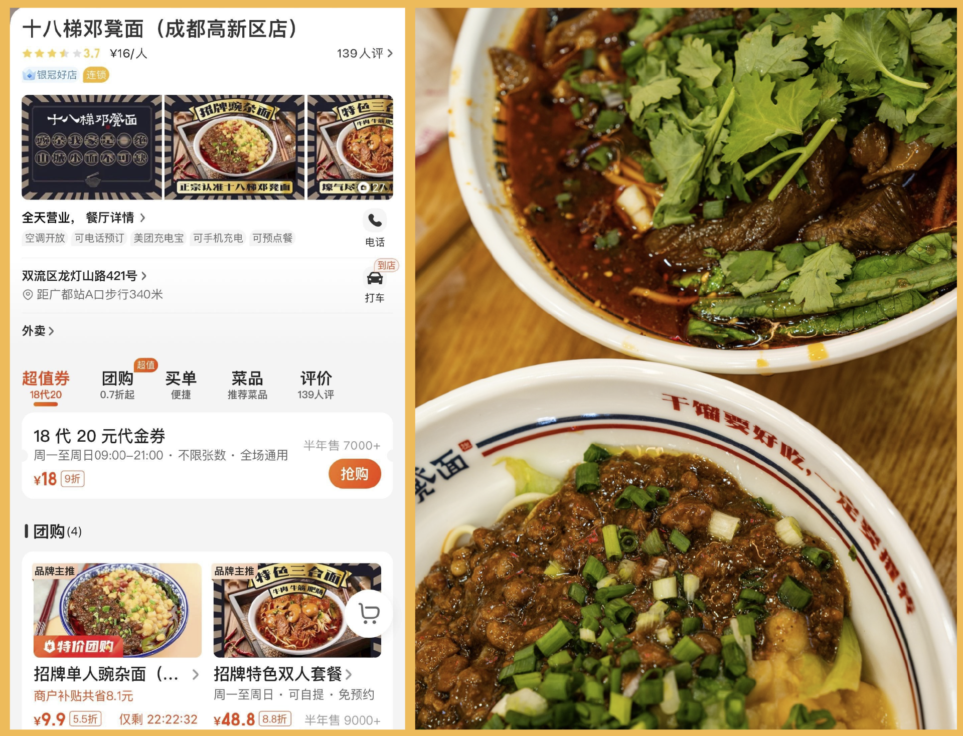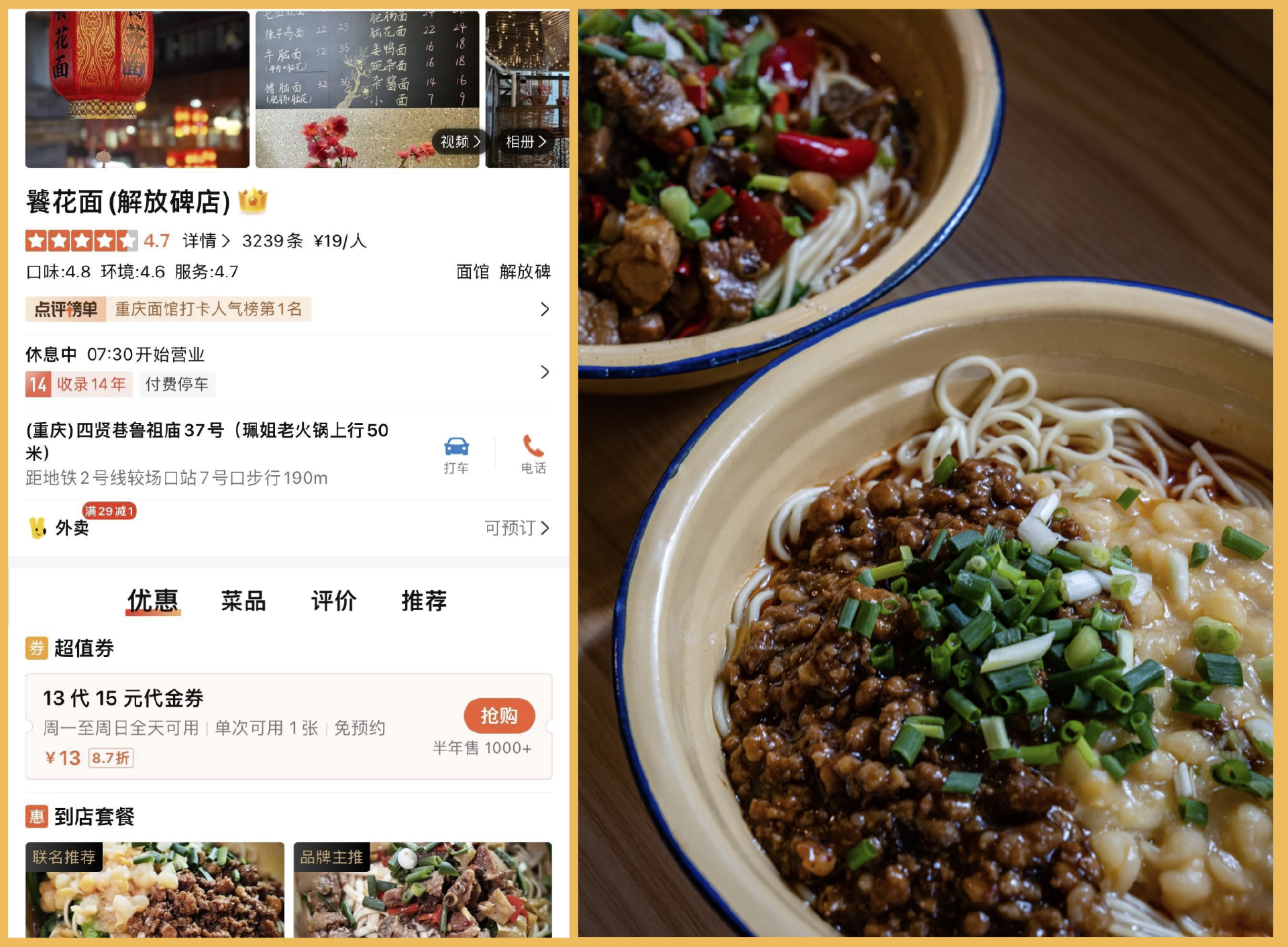 这家分店很多,解放碑附近也有一家,味道和上面那家差距不大,都特别好吃,这家的牛杂面也很好吃,团购价10元一碗豌杂,真的实名羡慕重庆人了。