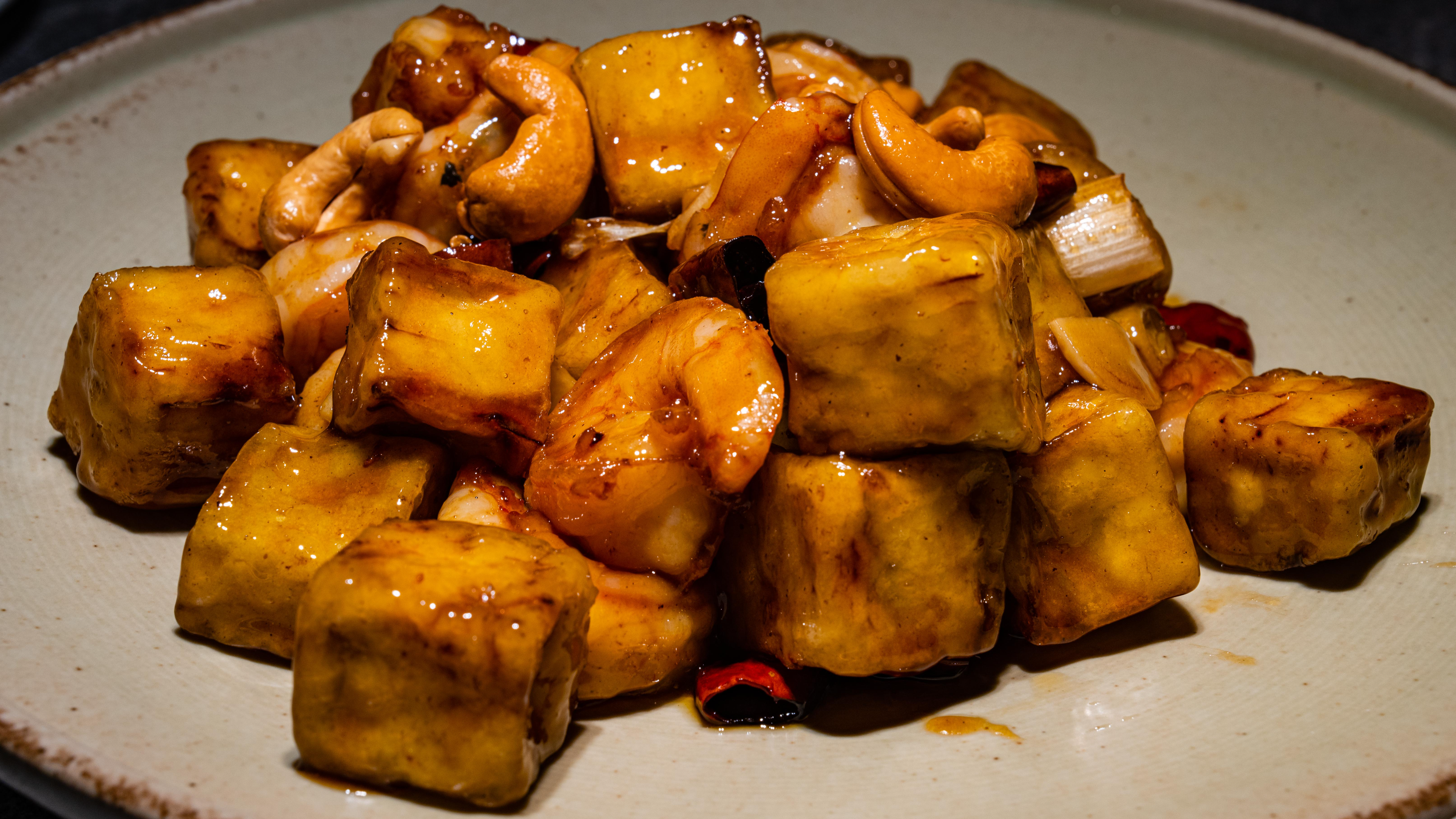 宫保茄香虾球是他家招牌菜,这菜凉了口感差距很大,味道确实不错,酥脆带香。