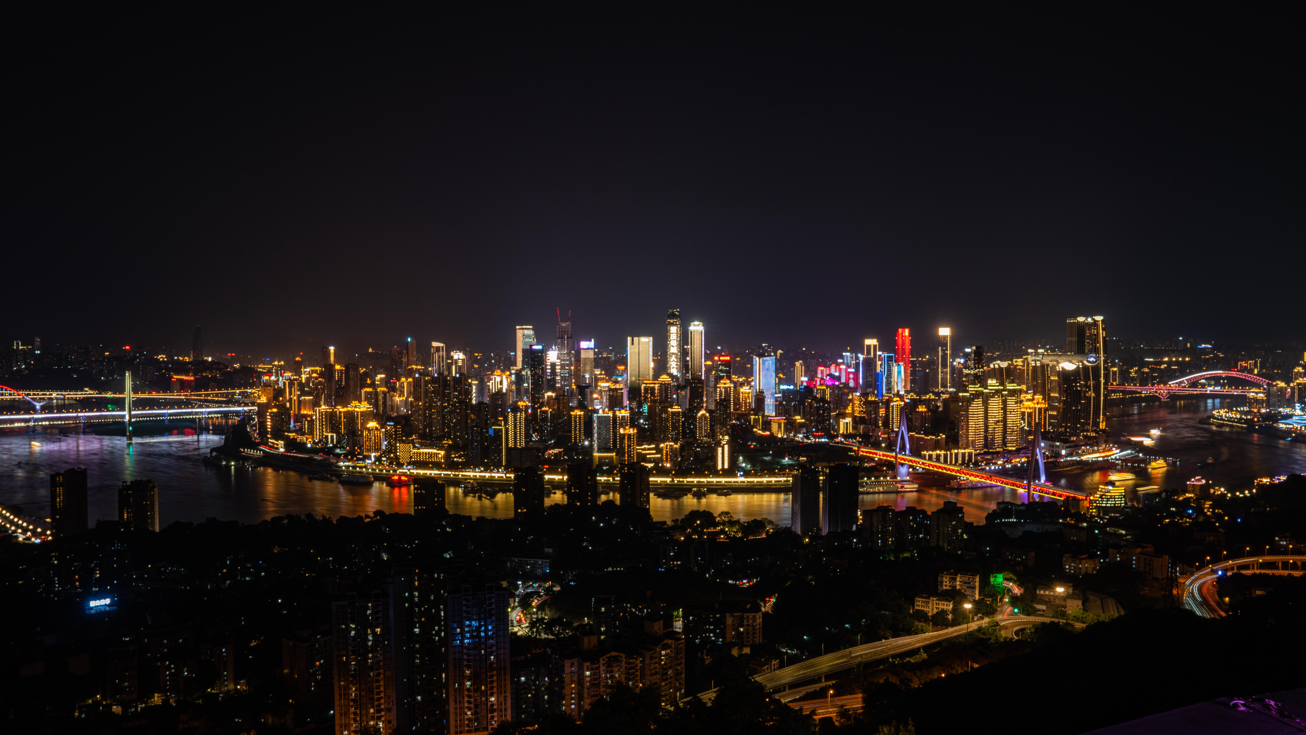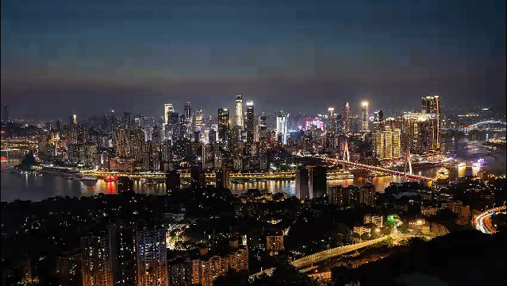 还有个地方叫南山一棵树,下图是在南山一棵树上拍的照片,可以看到重庆市中心的夜景,重庆8点多高楼陆陆续续开灯了,拍延时也可以在这。