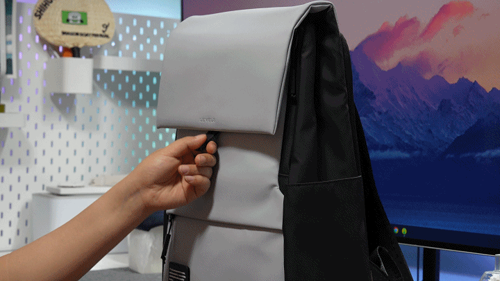 这款地平线8号moment系列背包我最喜欢的地方是它的打开方式,一般情况带盖子和卷顶背包是我最不推荐的,打开麻烦装载能力差,地平线8号这款开盖磁吸扣是德国fidlock磁吸扣,非常巧妙,开盖简单还很有仪式感,一提一拉就能打开,盖上也能自动闭合。表层材质是环保素皮亲肤材质,防水防油,不易氧化变形,有污渍轻轻擦拭即可。