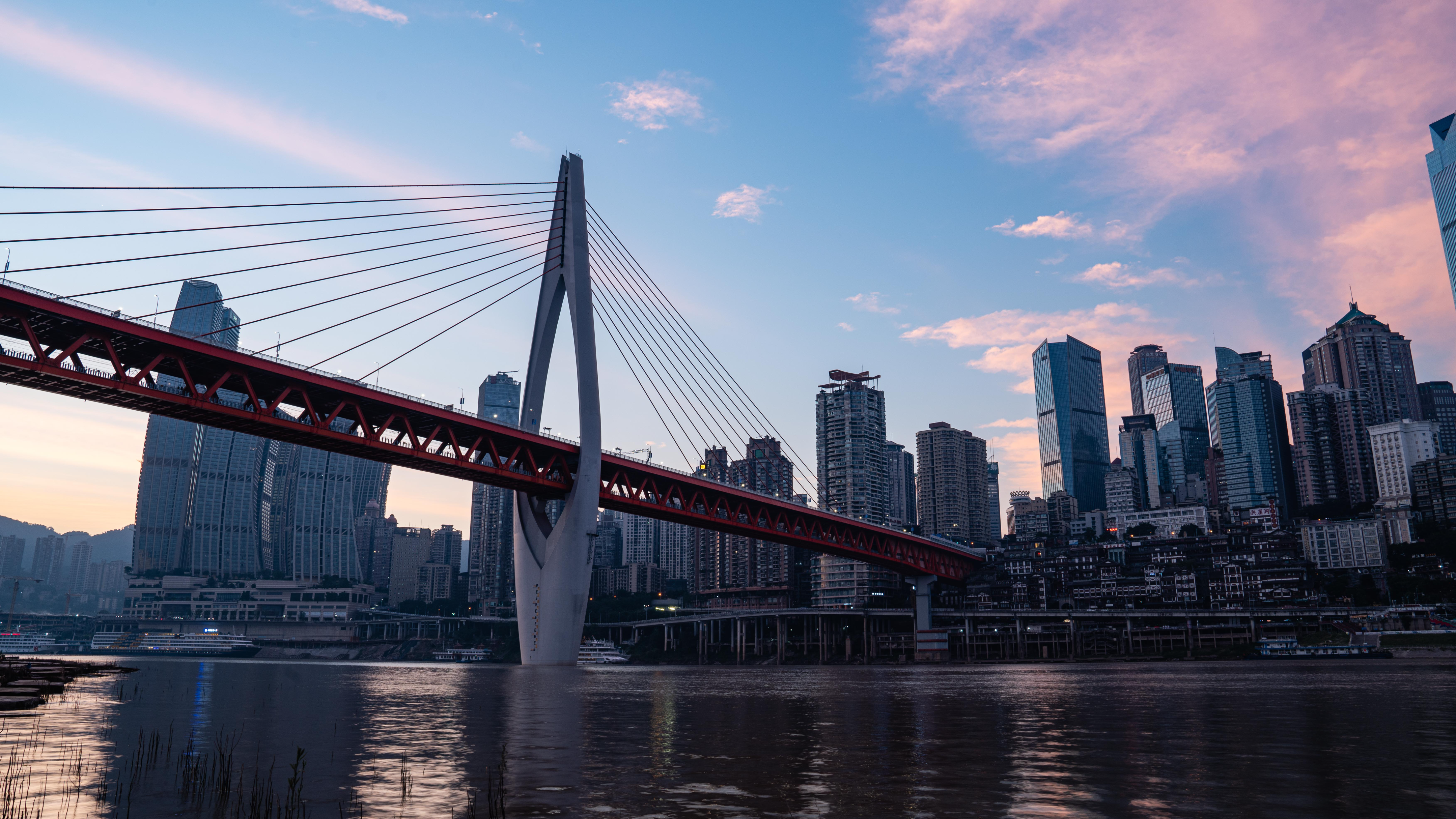 重庆大剧院可以拍日出,但是这里之前涨潮可能不太好下去,最近早上6点半日出,建议早点过去,也是拍延时的好地方,我当时去的时候早上的云是粉色的。