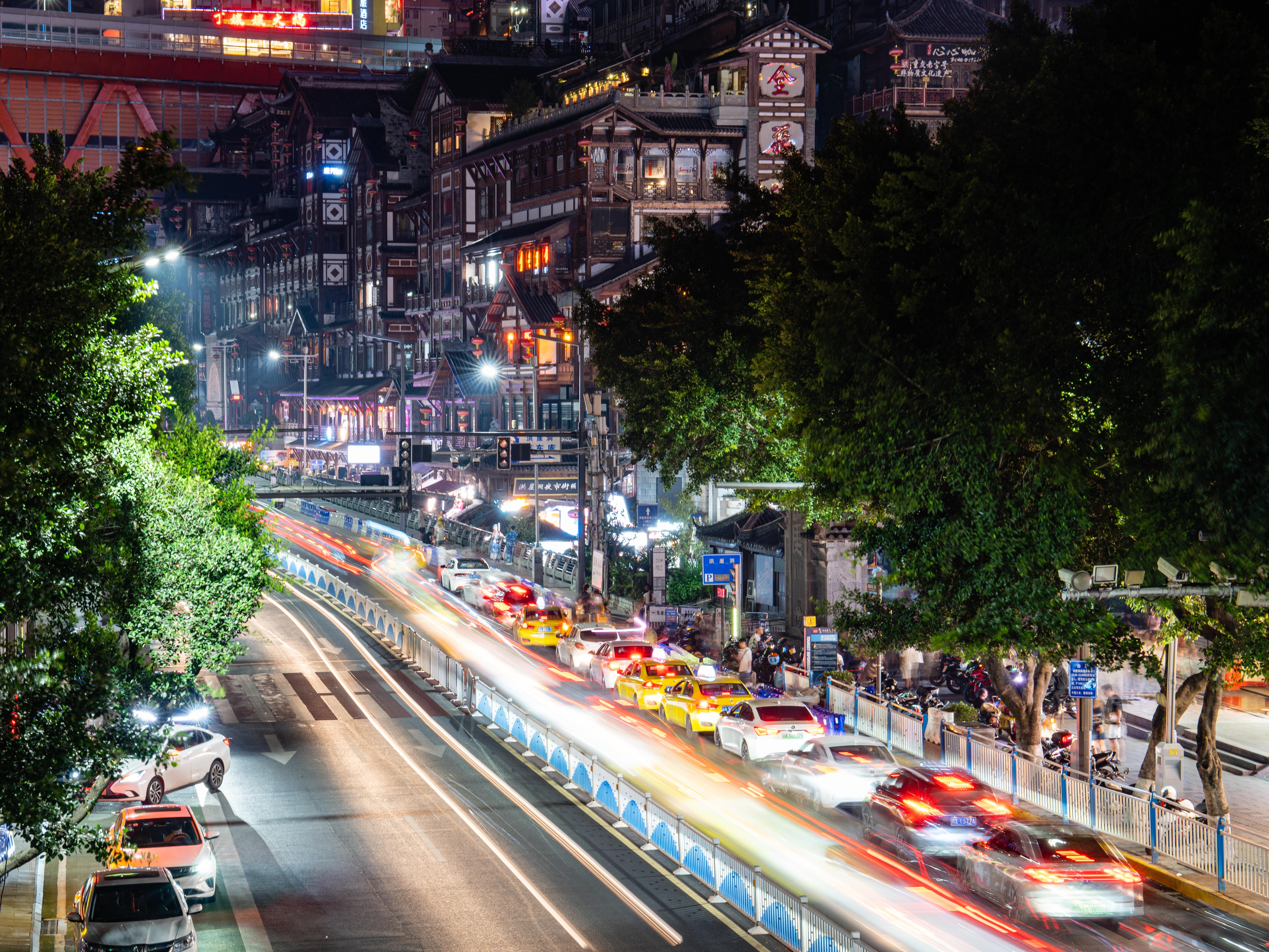 下面是11点之后的洪崖洞,已经关灯了路上仍然有很多人和车,这个景点应该是每个来重庆旅游必须来的,别在里面买东西就行。