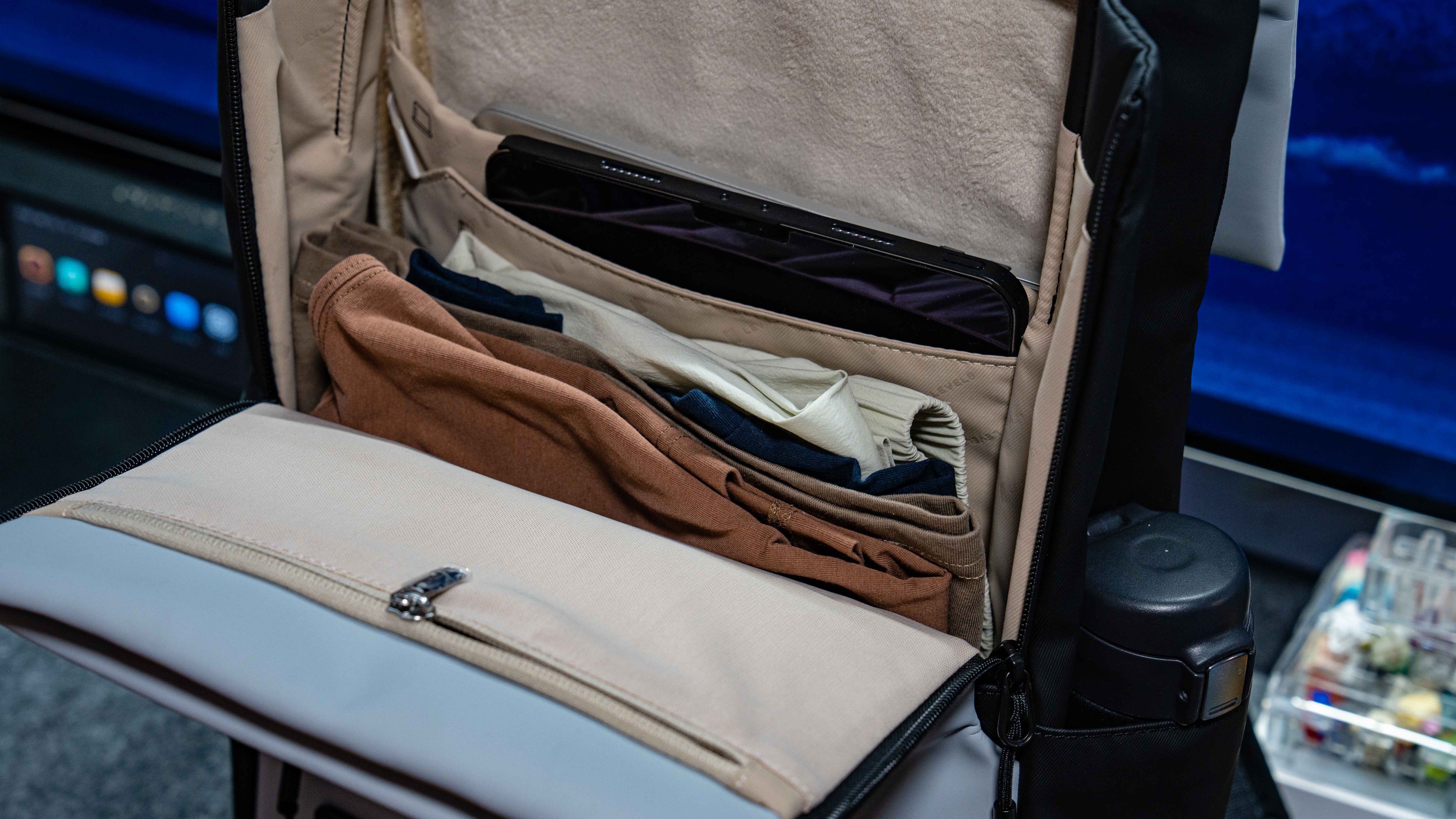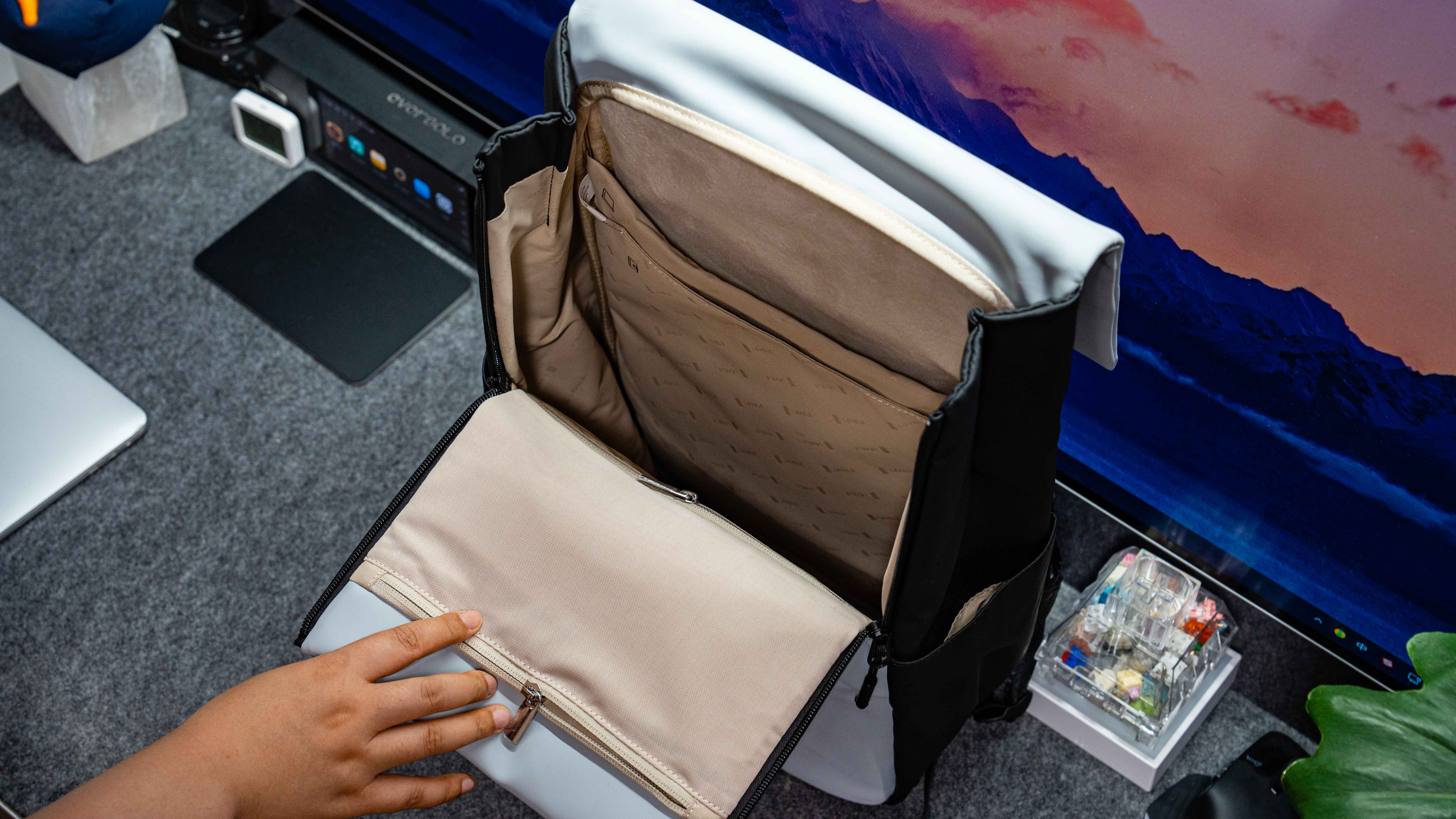 地平线8号这款Moment系列有两个尺寸,大号可以塞下11寸-15.6寸笔记本,绒面电脑仓太靠谱拉,容量20L,小号能塞下11寸-14寸笔记本,容量16L,20L对于日常通勤是最合适的尺寸,电脑之外装水壶、充电设备、衣服等都没问题,包型设计的也符合人体结构,大众身材基本都适合。