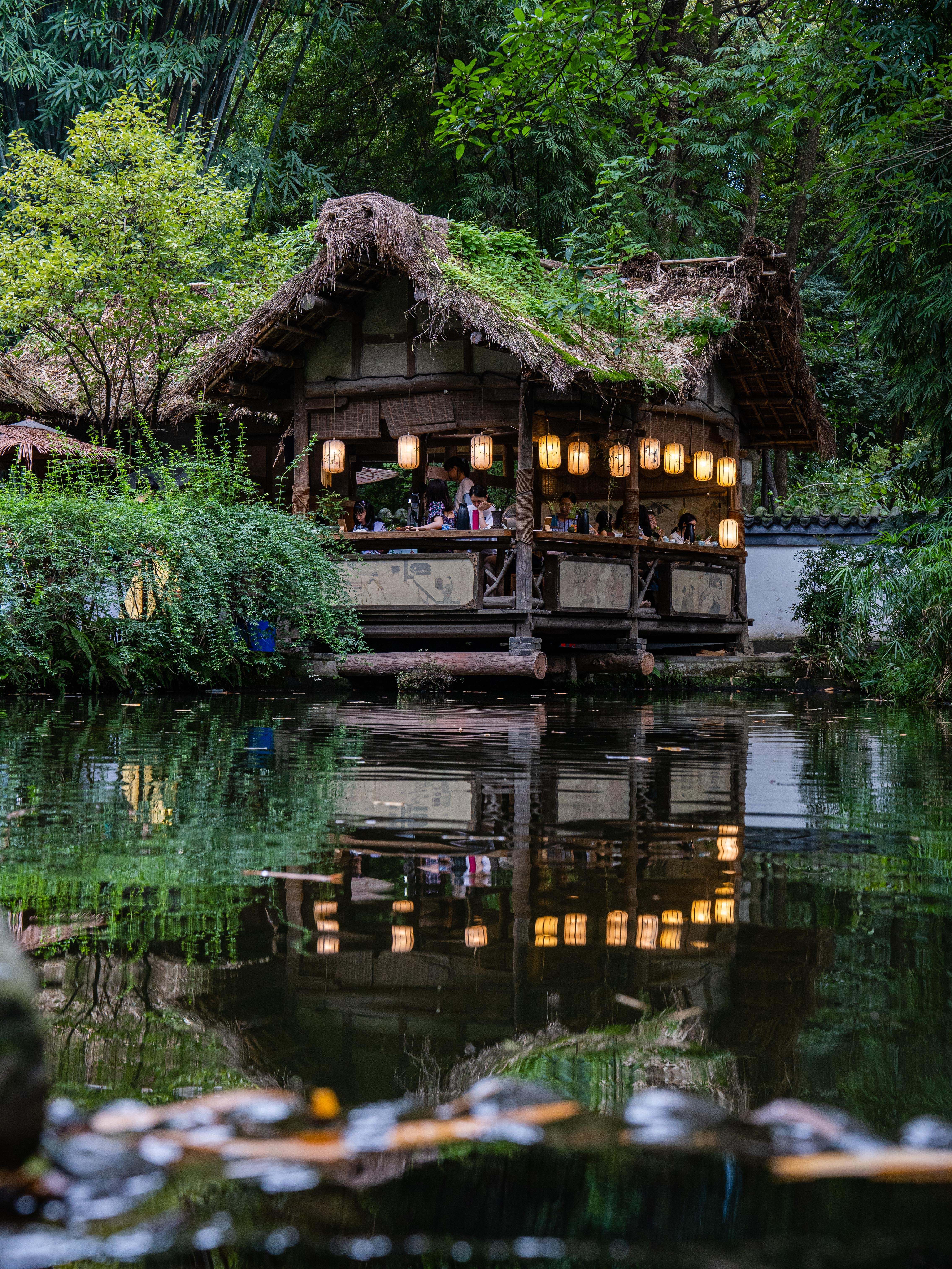 之后我又去了杜甫草堂,一个人要50元门票,门票稍微贵了点,但里面风景不错,而且特别干净,和免费的成都人民公园鲜明反差,拍照特别出片,建议半下午再去,灯开了更有氛围。