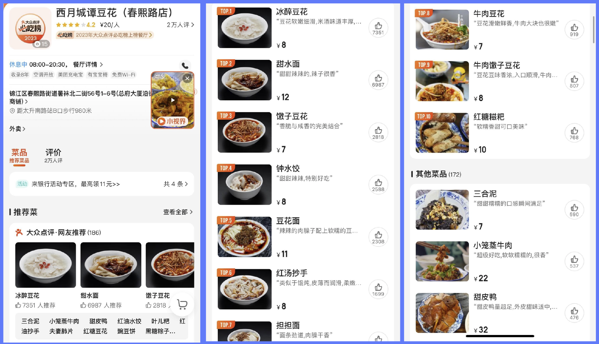 这家成都也有,我先吃的这家,感觉是比较现代的店,位置非常多,人也很多,这家附近好几家好吃的,和上面那家比不相上下,如果不去古镇建议来这家,店对面还有绵绵冰。