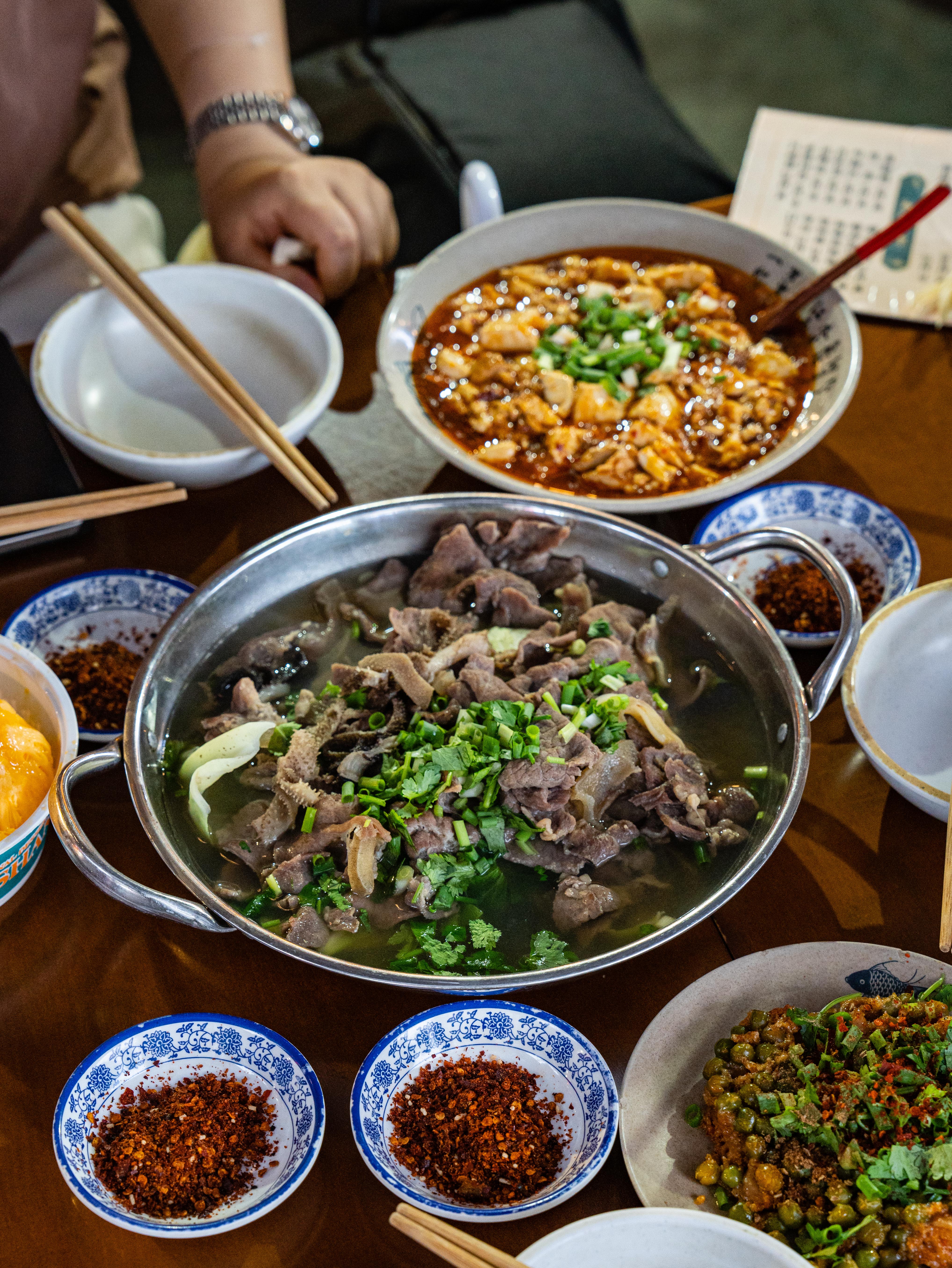 跷脚牛肉是乐山特产美食之一,没想到如此清淡的食物居然出自四川,跷脚牛肉就是将牛肉牛杂煮熟,然后加肉汤,清爽又鲜,还有海椒面蘸碟,小杨这家地方有点远,在苏稽古镇附近,逛这个景区可以顺带去吃吃,不过这个景区真没啥可逛的,就是个普通古镇,我去的早也没拍照。