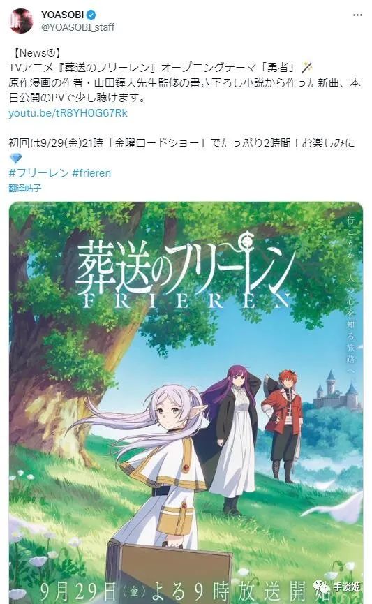 但YOASOBI现在又是有流量的,对于看动画的观众来说,不时就会看到YOASOBI又给动画唱op了。最近,YOASOBI为《葬送的芙莉莲》唱op的消息传出,公开的《勇者》副歌部分让不少漫画党感到失望。