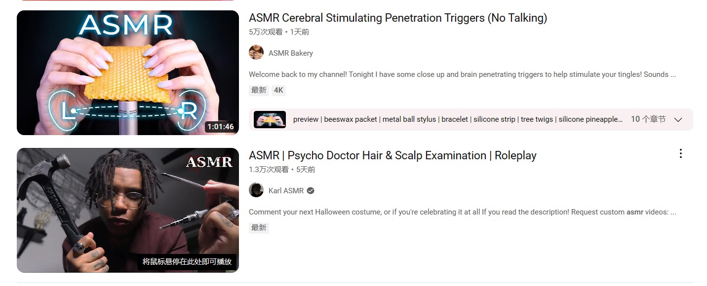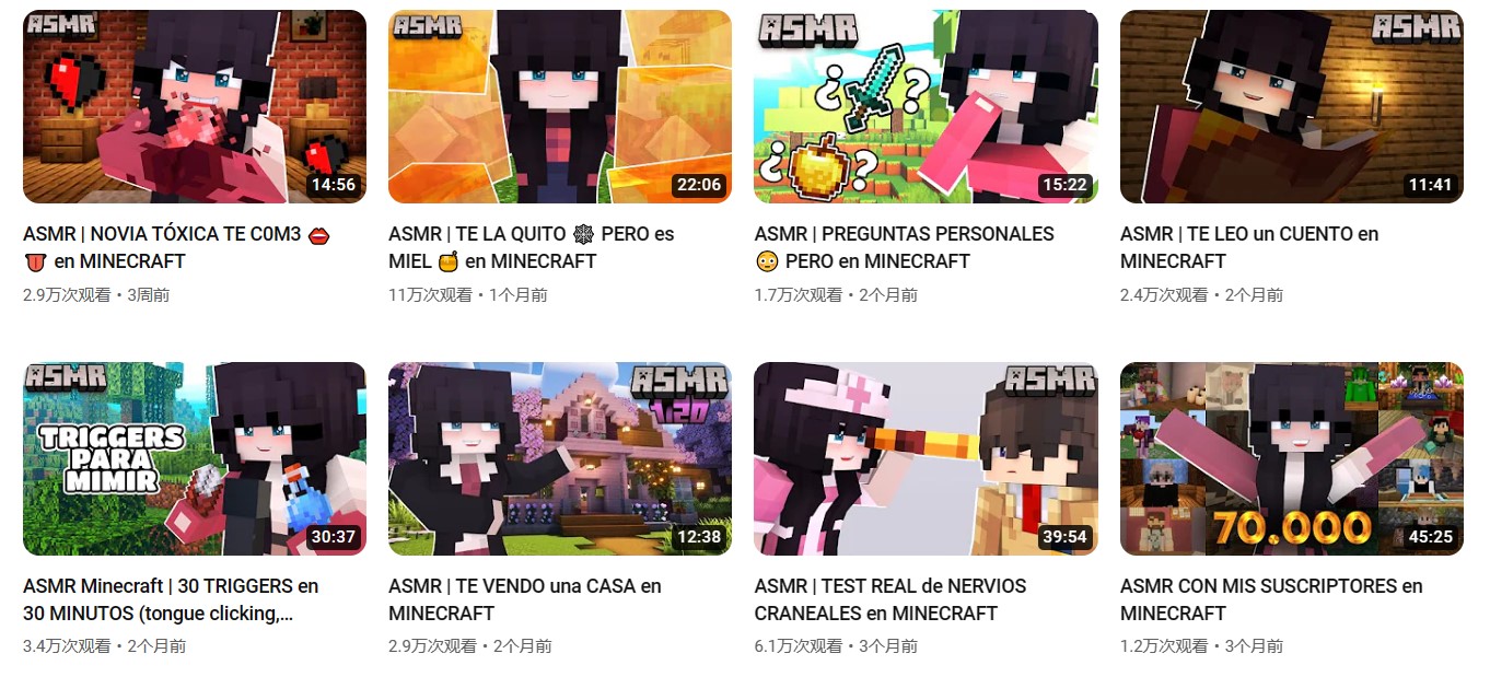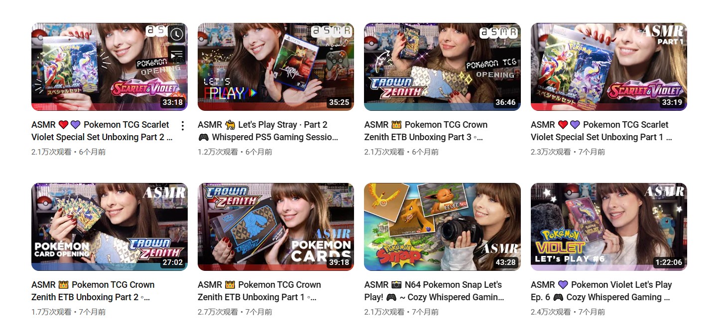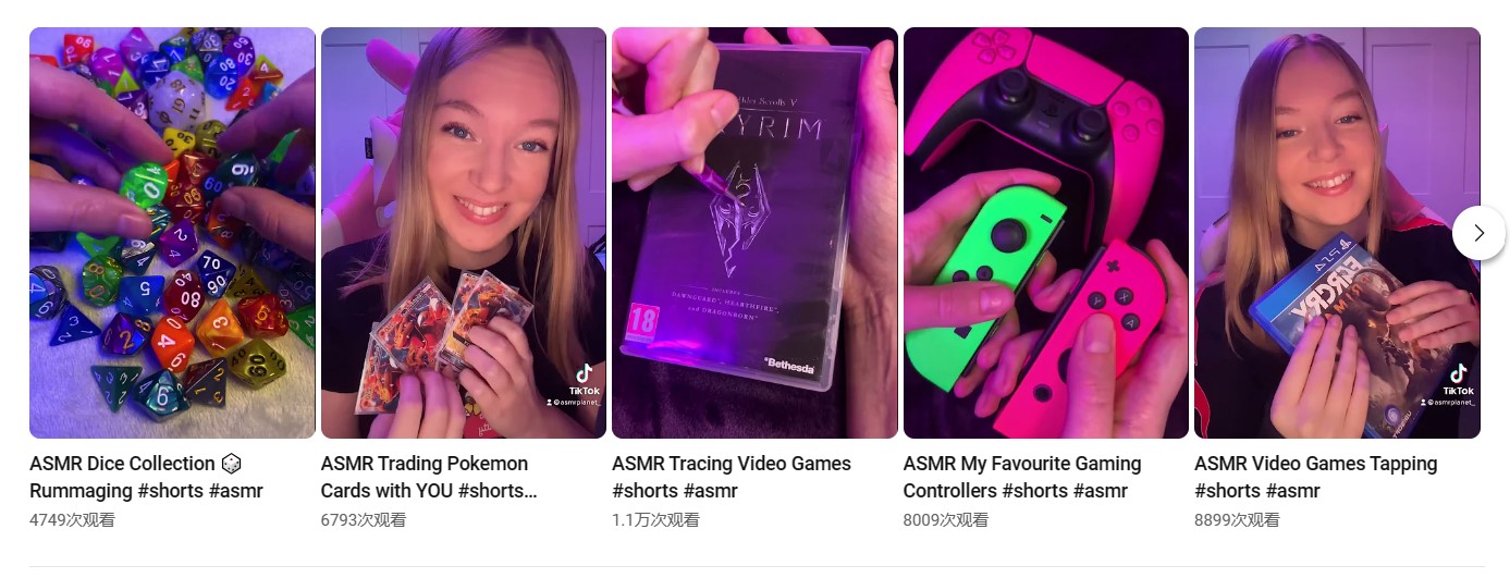 如今在youtube上搜ASMR就会出现一大堆相关视频,在国内视频平台上也有不少自制和搬运的ASMR视频,电子游戏元素也成为ASMR视频的一大卖点.
