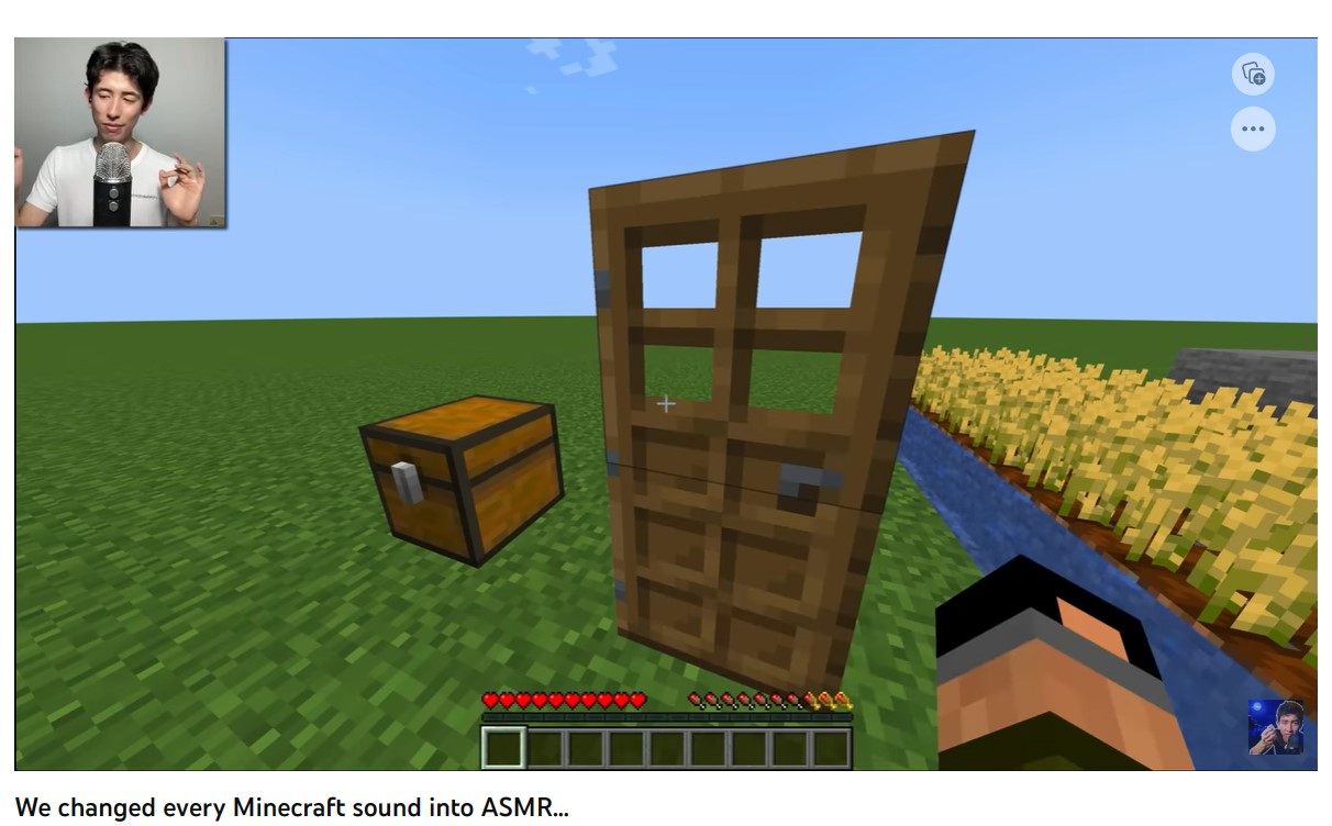 Jojo's ASMR的Minecraft助眠视频,将Minecraft中的声音制作成ASMR.