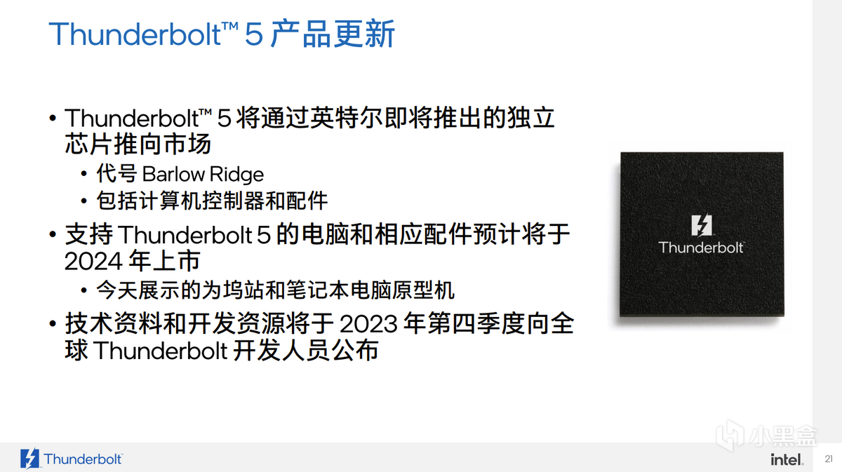 同時,Thunderbolt 5不會像Thunderbolt 4那般快速的融入到最新的英特爾CPU中,而是以獨立的芯片存在,芯片代號Barlow Ridge。