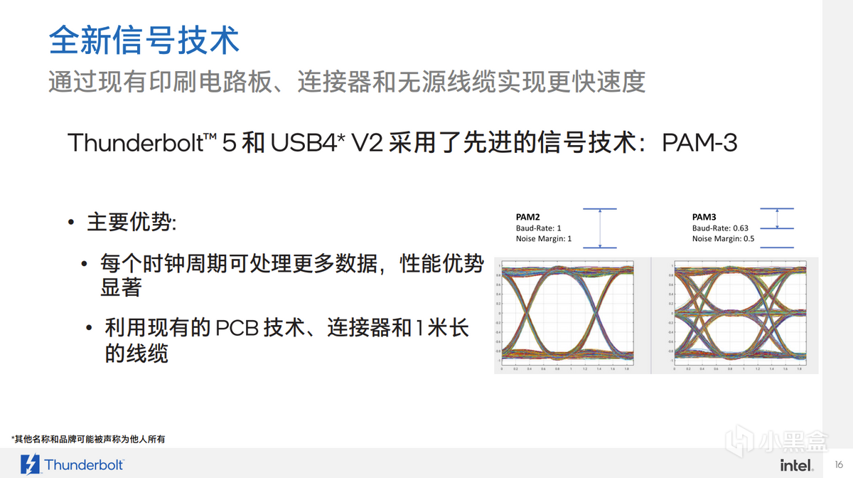 重點在於帶寬,Thunderbolt 5能夠在硬件變化不大的前提下,單通道的帶寬提升2倍,這裏需要引入一個概念,PAM。