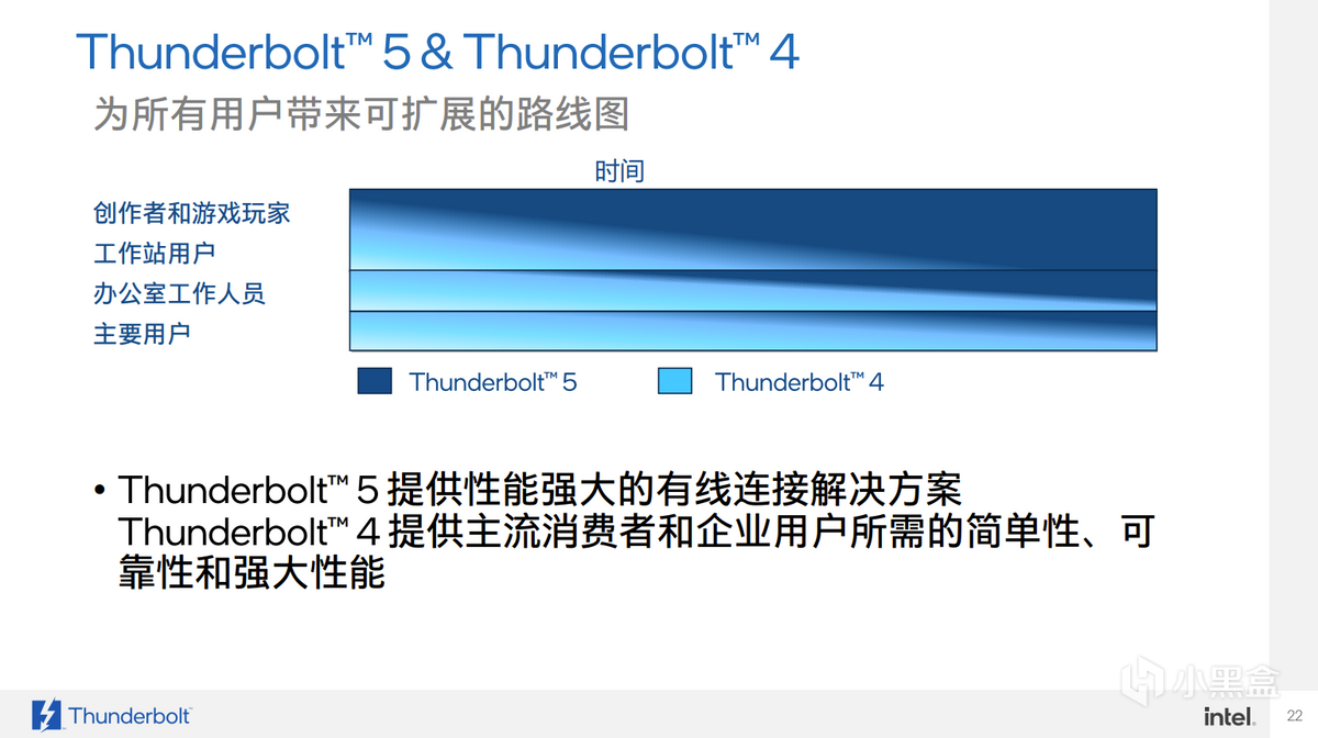 有意思的是,Thunderbolt 5推出後,不會立刻替代Thunderbolt 4的位置。英特爾認爲除了高端遊戲玩家和內容創作者,還有多數用戶對數據傳輸需求沒有那麼高,畢竟較少的硬件層面修改同樣涉及成本,對於大多數用戶而言,能把Thunderbolt 4的40Gbps速度用盡也是相當罕見的。