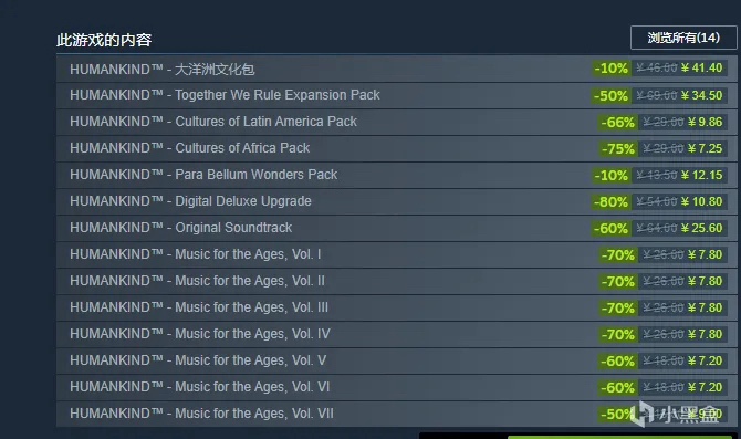 如果您想补齐dlc的话每个dlc现在也都有单独折扣。全新的 "大洋洲文化"(Cultures of Oceania)DLC 现在甚至打出了 10% 的折扣它包括重做的资源和贸易,以及新的战斗类型,您可以偷猎敌人以从贸易路线上窃取资源,使用具有新能力的更快的船只,并沉浸在混乱的加勒比海盗文化中。