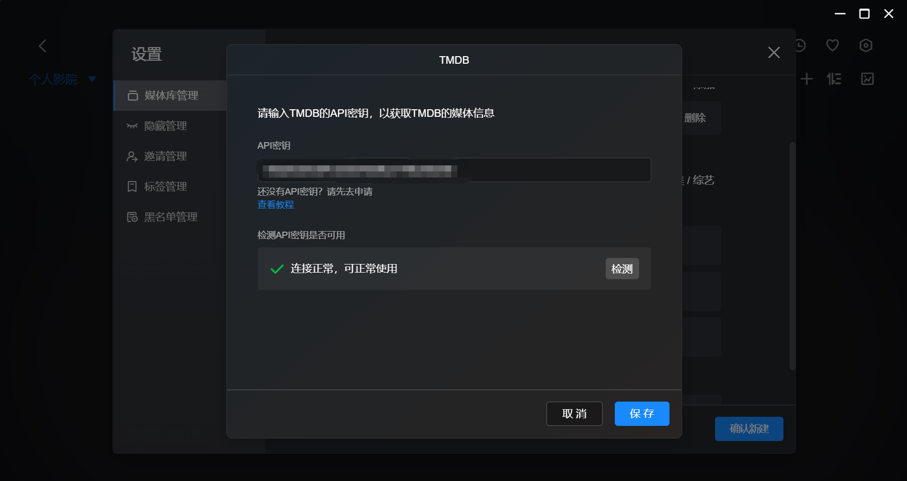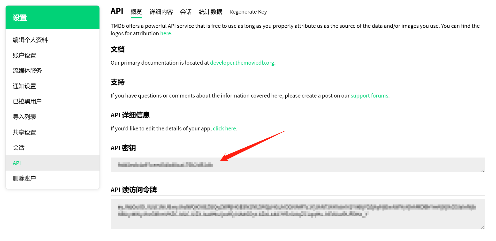 開啓T M D B刮削器需要獲取T M D B API才能正常使用,而T M D B API的獲取也不難。我們先去T M D B官網註冊一個賬號,然後進入用戶設置-API,申請API。