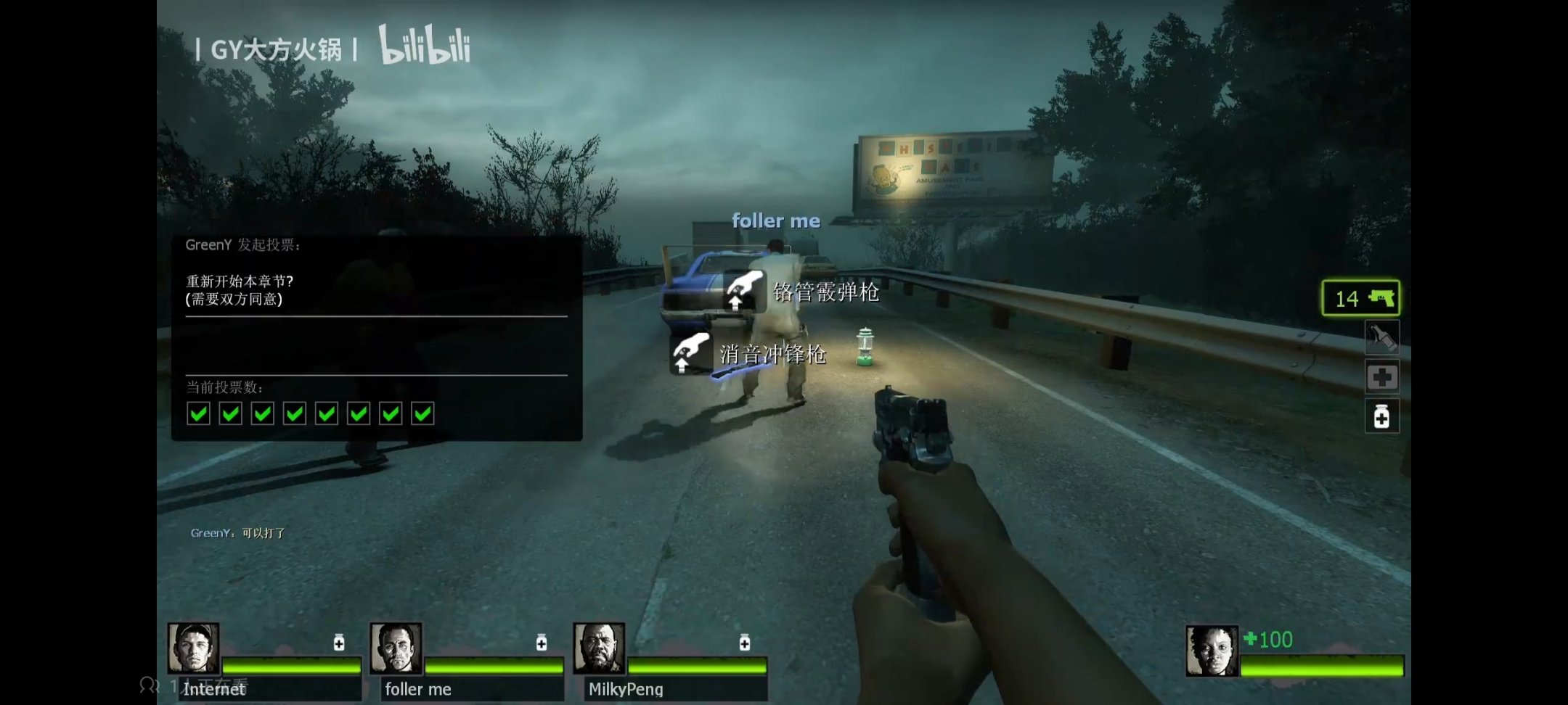 由于都没有玩过,我就按照求生之路的剧情顺序带他们游玩官方地图,另外为了充足的游戏体验,我让他们走前面,我断后解控。