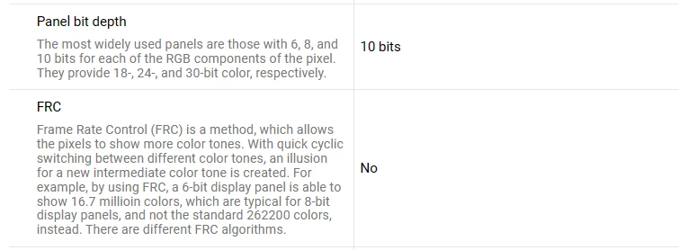 也正是由于OLED对于亮度控制更加精细,所以OLED能对每个颜色实现更多级别的灰度调整。虽然LG没有在详情页标注,但是我们可以在DisplaySpecifications上查到,LG 77C3支持原生10bit色深,而LCD电视的10bit色深基本都是通过8bit+FRC抖上去的,效果肯定是不如OLED原生 10bit 效果好的。