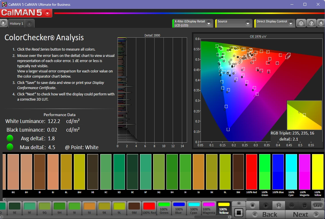 LCD虽然在色域方面慢慢赶上OLED了,但是色准上的差距却很难弥补,有不少LCD电视在SDR色准还可以,但是到了HDR下色彩就胡乱映射。OLED由于其特性的原因,能够更加精准的控制色彩。所以,OLED的色准表现往往都非常好,LG 77C3 平均色差△E为 1.8,最大色差△E为 4.5。这个色准表现已经和准专业显示器无异了,肉眼已经无法感受到色彩差异。