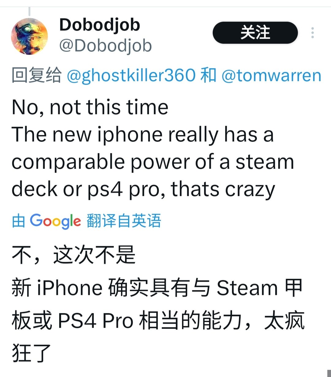 許多遊戲博主和玩家直接將蘋果15 Pro和steamdeck與PS4Pro做對比,比該手機的稱讚溢於言表!總之,該產品爲推動移動端遊戲的發展作出了巨大貢獻!