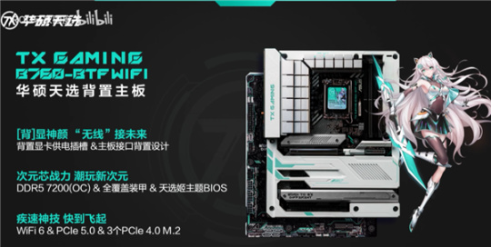 7月份的BW 2023发布会上,华硕公布了华硕BTF 2.0“无线”解决方案,同时展示了华硕B760天选背置主板“TX GAMING B760-BTF WIFI”。