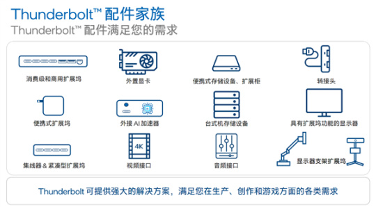 雷电技术本身越发强大的同时,扩展配件也越来越丰富,可用于工作、游戏各种场景,诸如扩展坞、外置显卡、外置存储、转接头、显示支架等等。